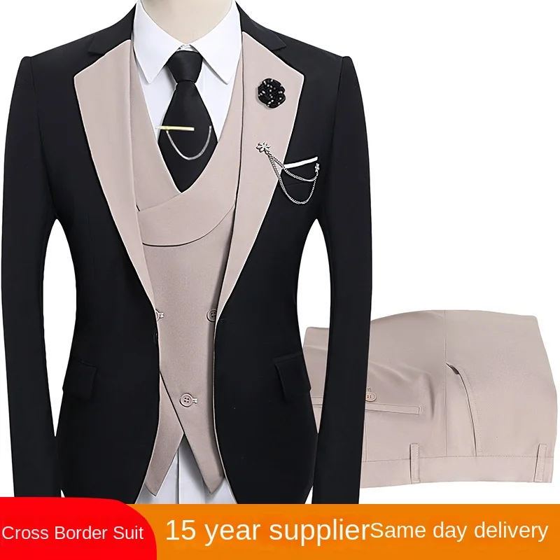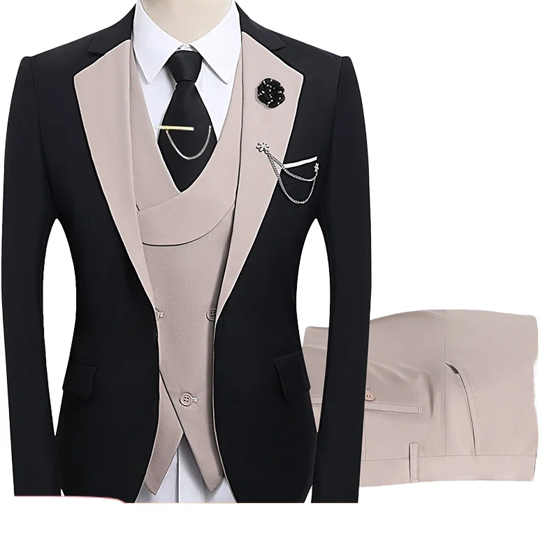 Factory Customized Spot Men's Three-Piece Suit Jacket Set with Zipper Closure Breathable Polyester Fiber Wedding Suits for Men