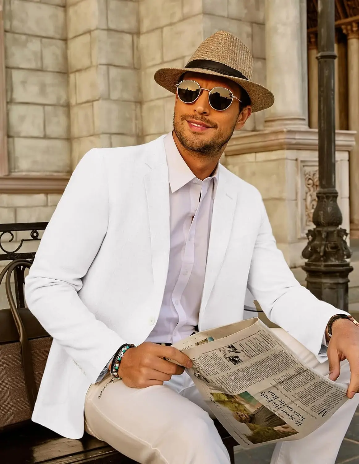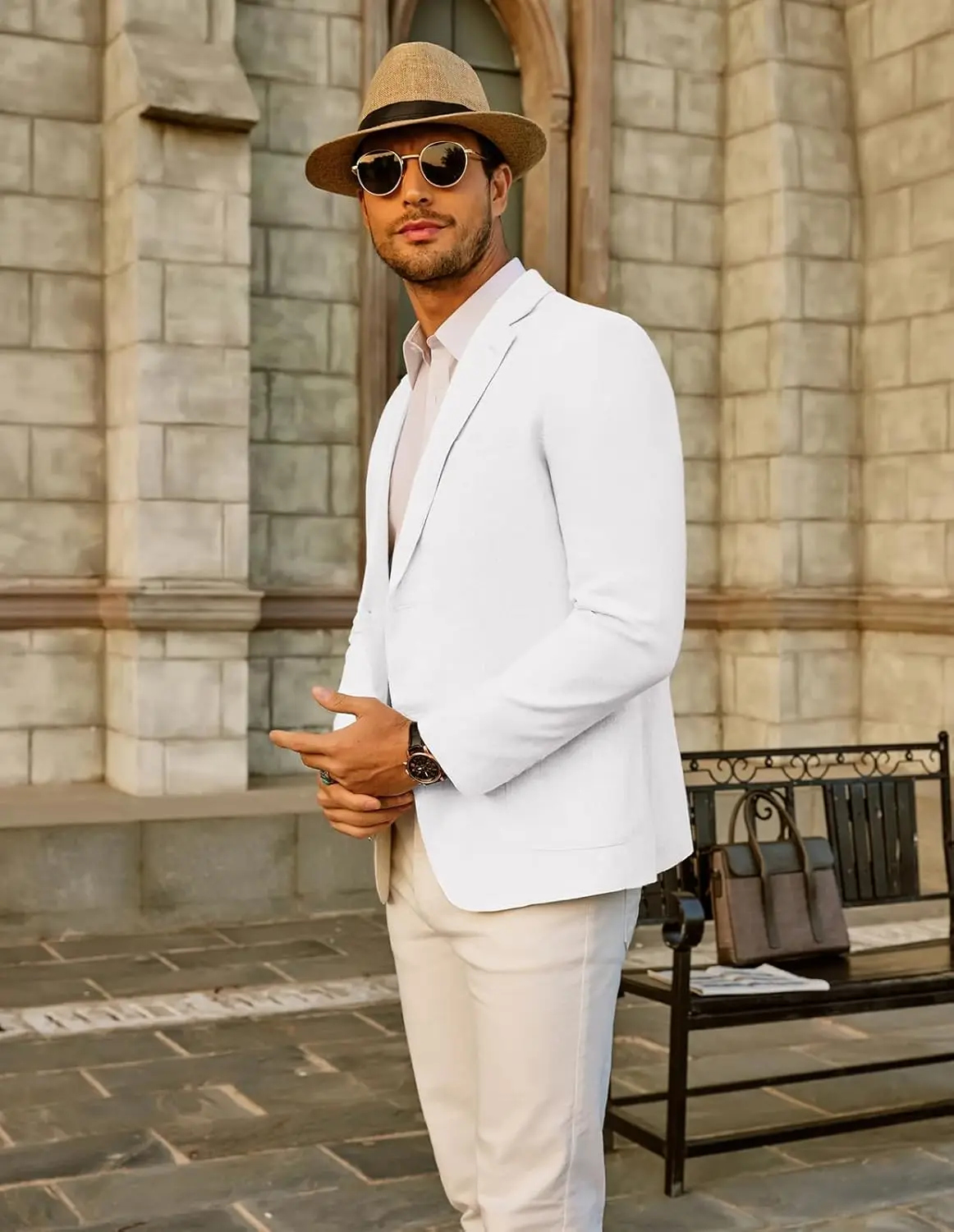 YiFeng Factory Men's Single Breasted Button Fly Flat Front Slim Fit Lightweight 2 Button V-neck Breathable Anti-Wrinkle Suits
