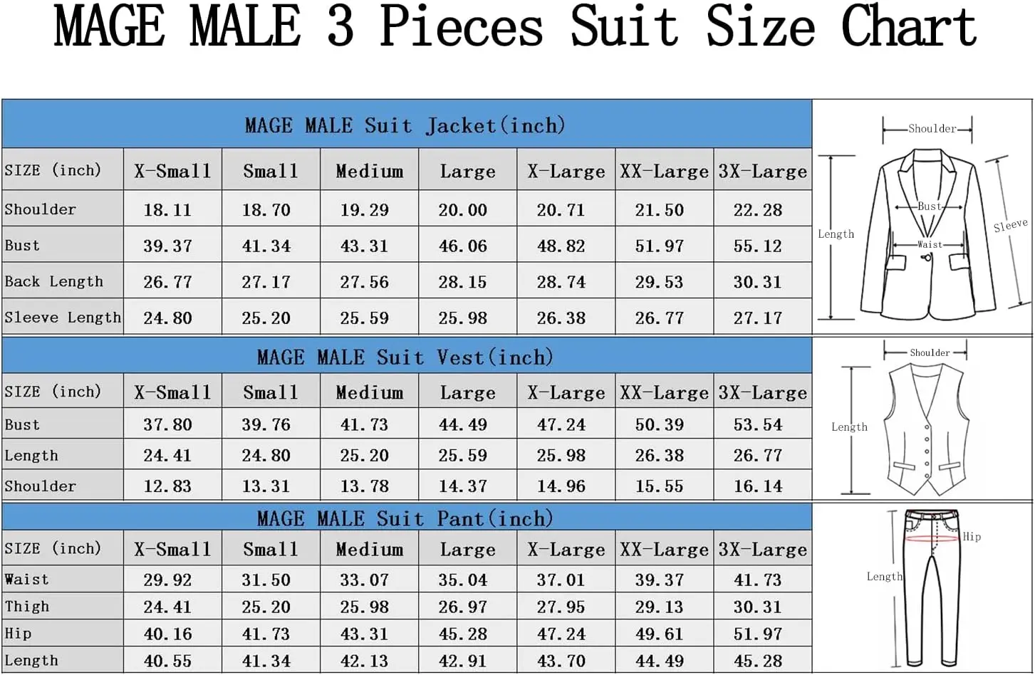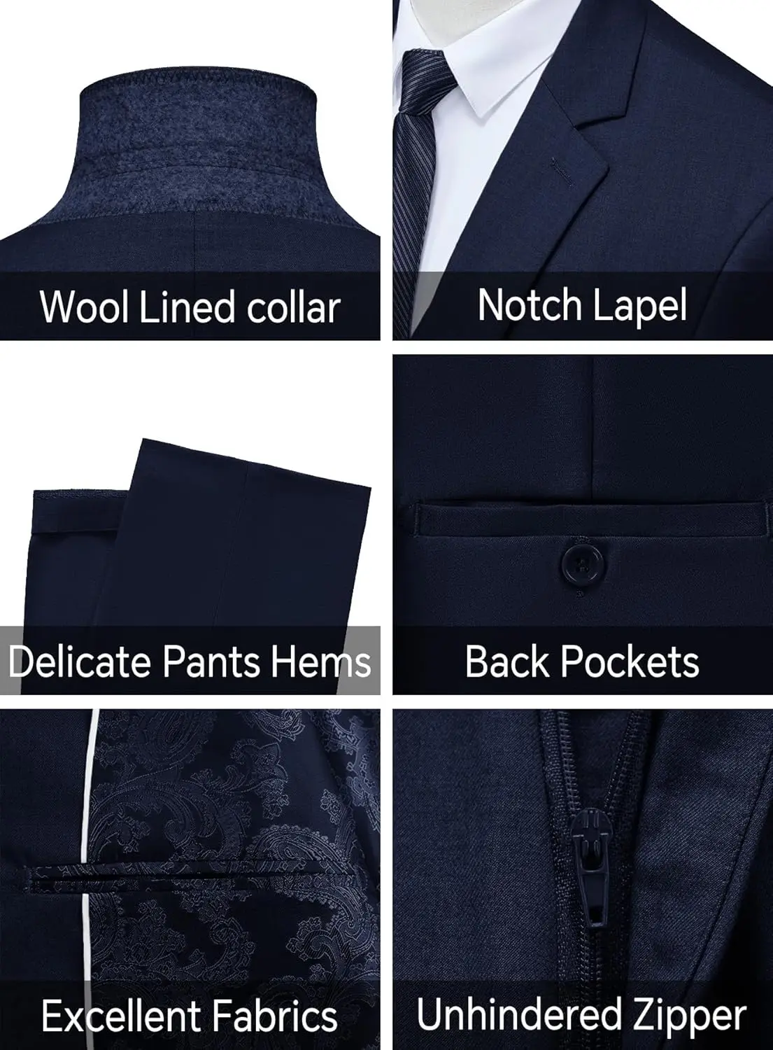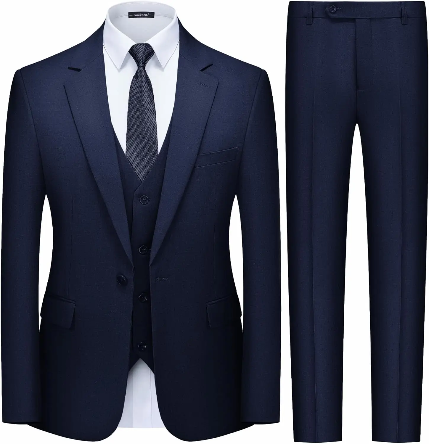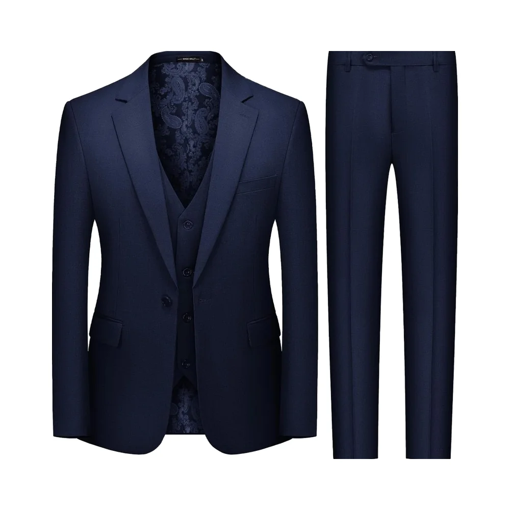 Clothes Factory Men's 3-Piece Polyester Rayon Suit Slim Fit Zipper Closure Business Wedding Party Solid Blazer Vest Pant Sets