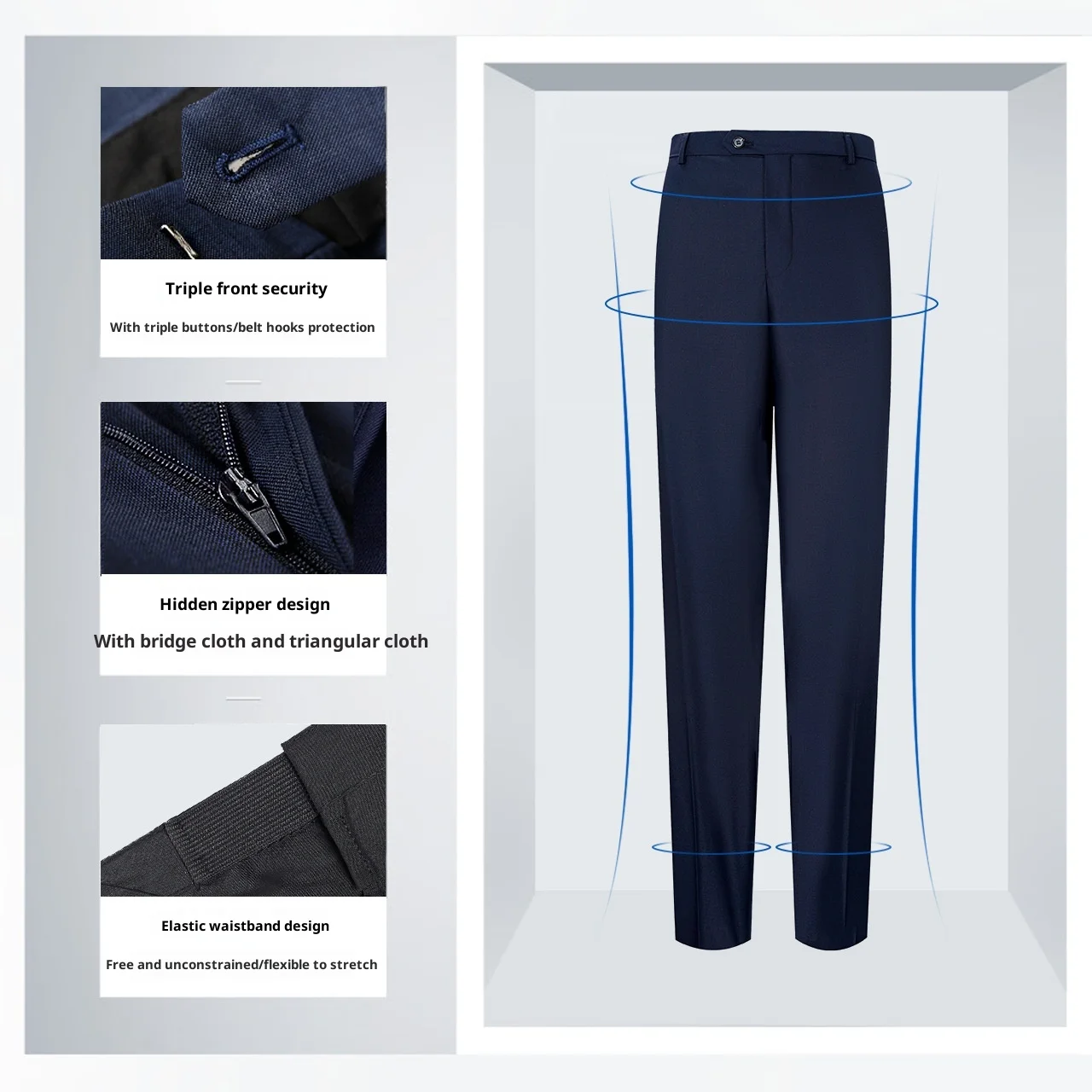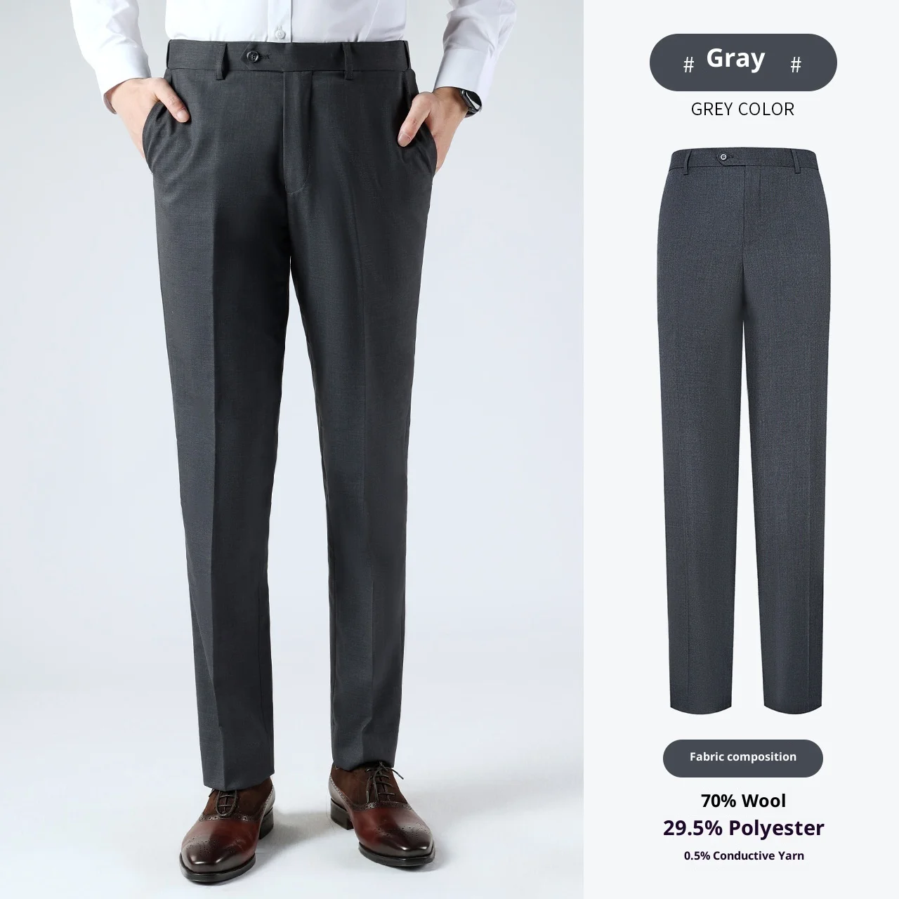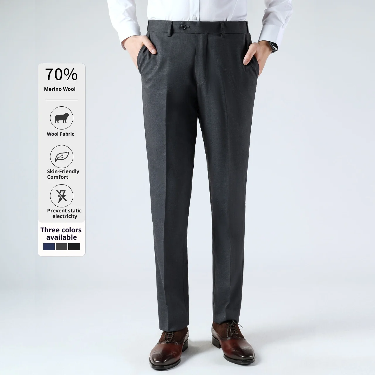 Wholesale Men's Slim Fit Office Formal Overalls Latest Design Classic Straight Breathable Anti-Wrinkle Mideweight Zipper Pants