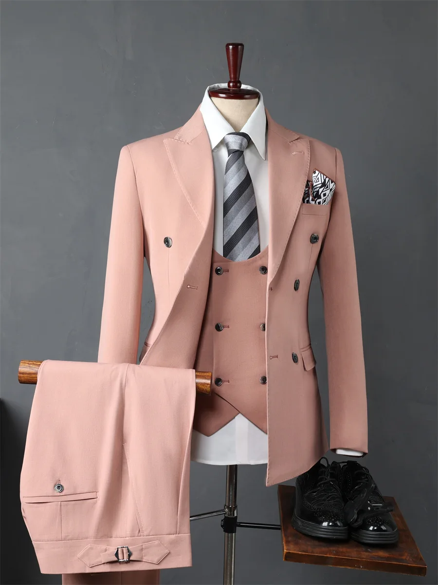 Direct Factory Sale High-End 3-Piece Plus Size Men's Wedding Dress Double Breasted Zipper Fly Pant Groomsmen African Suits