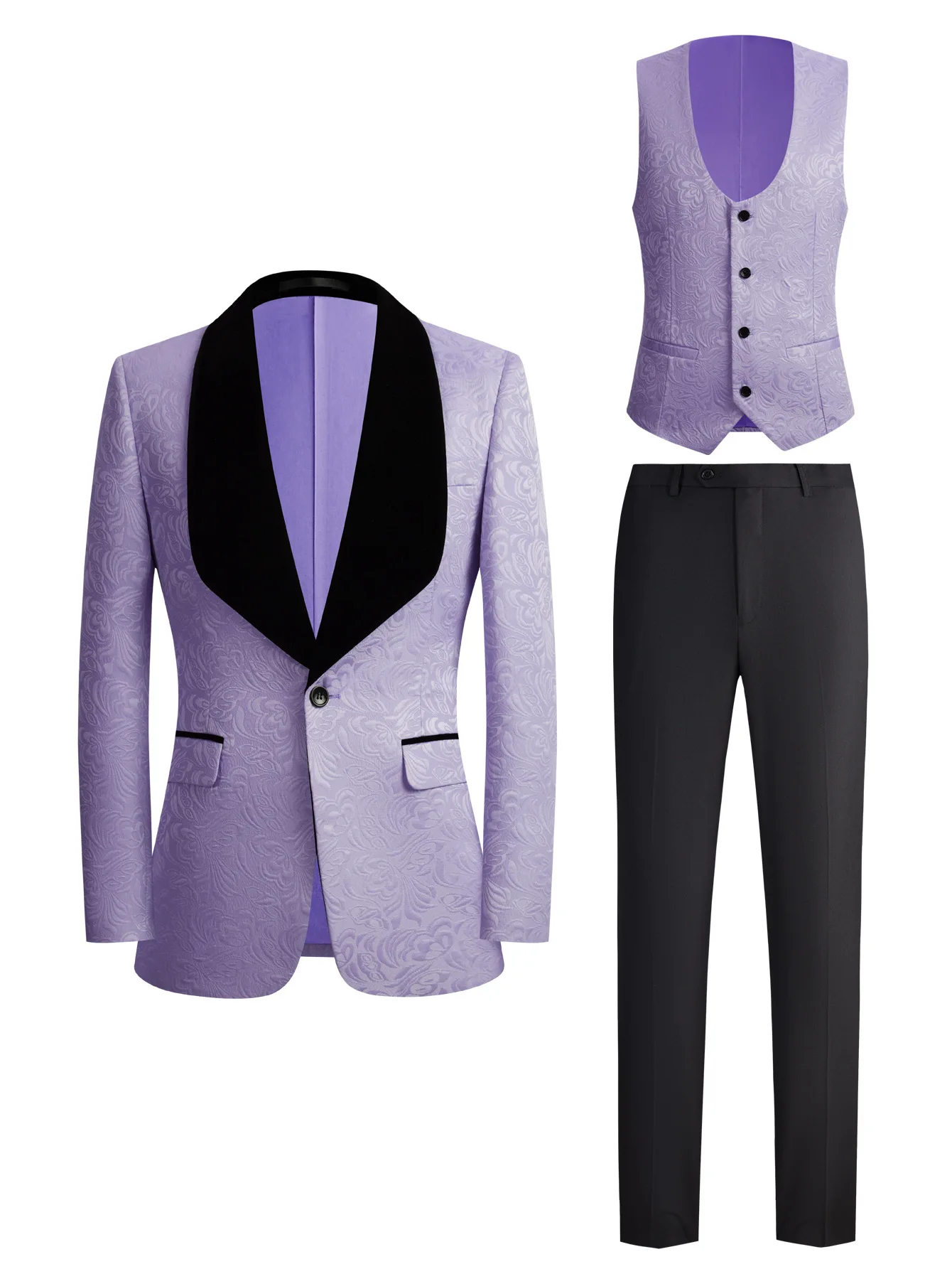 Wedding Three-piece Single Breasted Tuxedo Men's Suit European American New Business Casual School Groom Dress Beaded Zipper