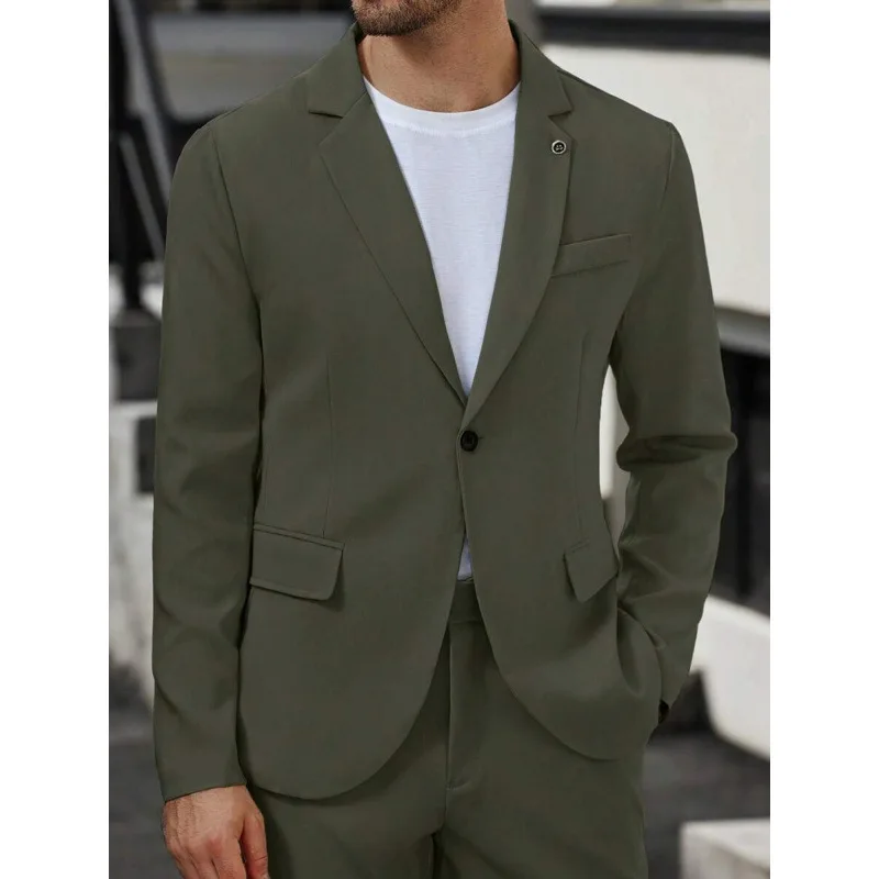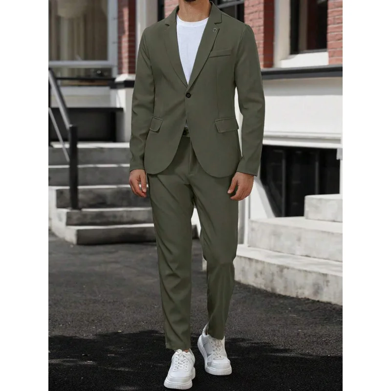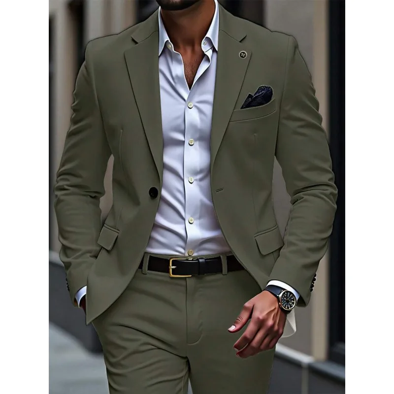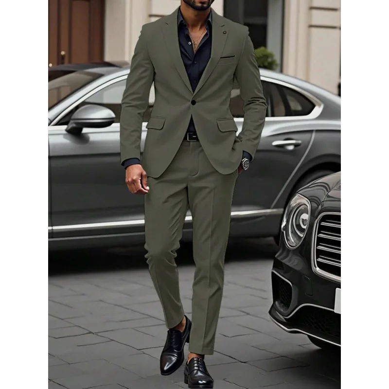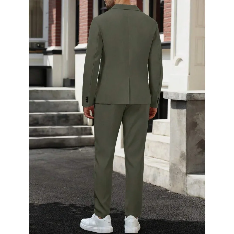 2-Piece Fashionable Green Men's Suit Single Breasted Worsted Jacket Long Pants Slim Fit Business Formal Anti-Shrink Suit for Men