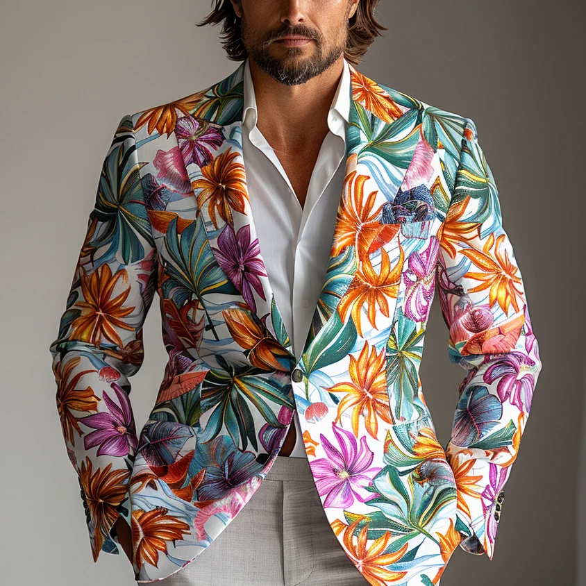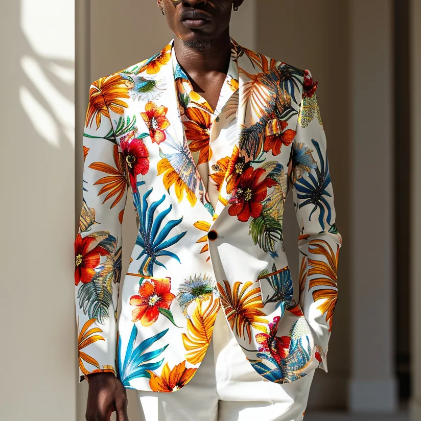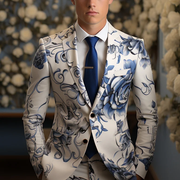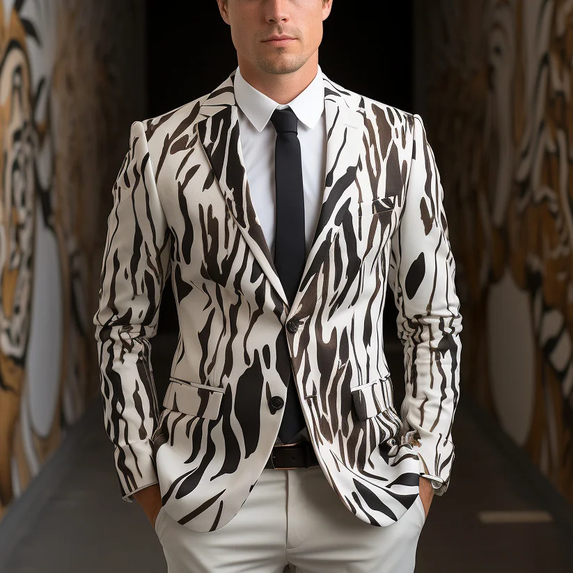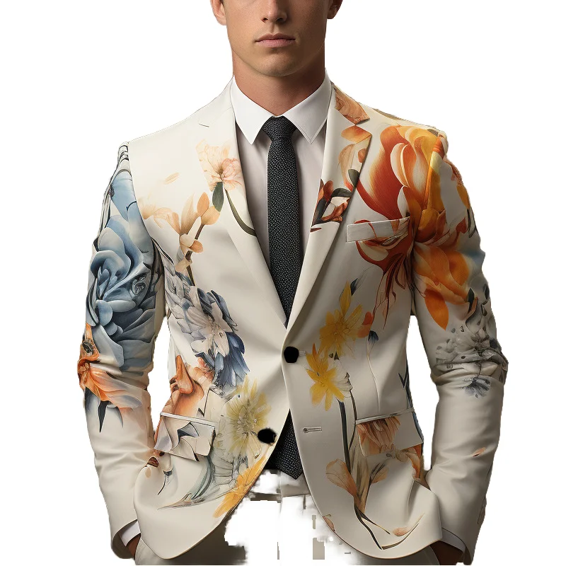 New Men's Single Breasted Zipper Fly Business Suits Adult Embossed Velour Printed Tops Waterproof Anti-Wrinkle Suit Jacket