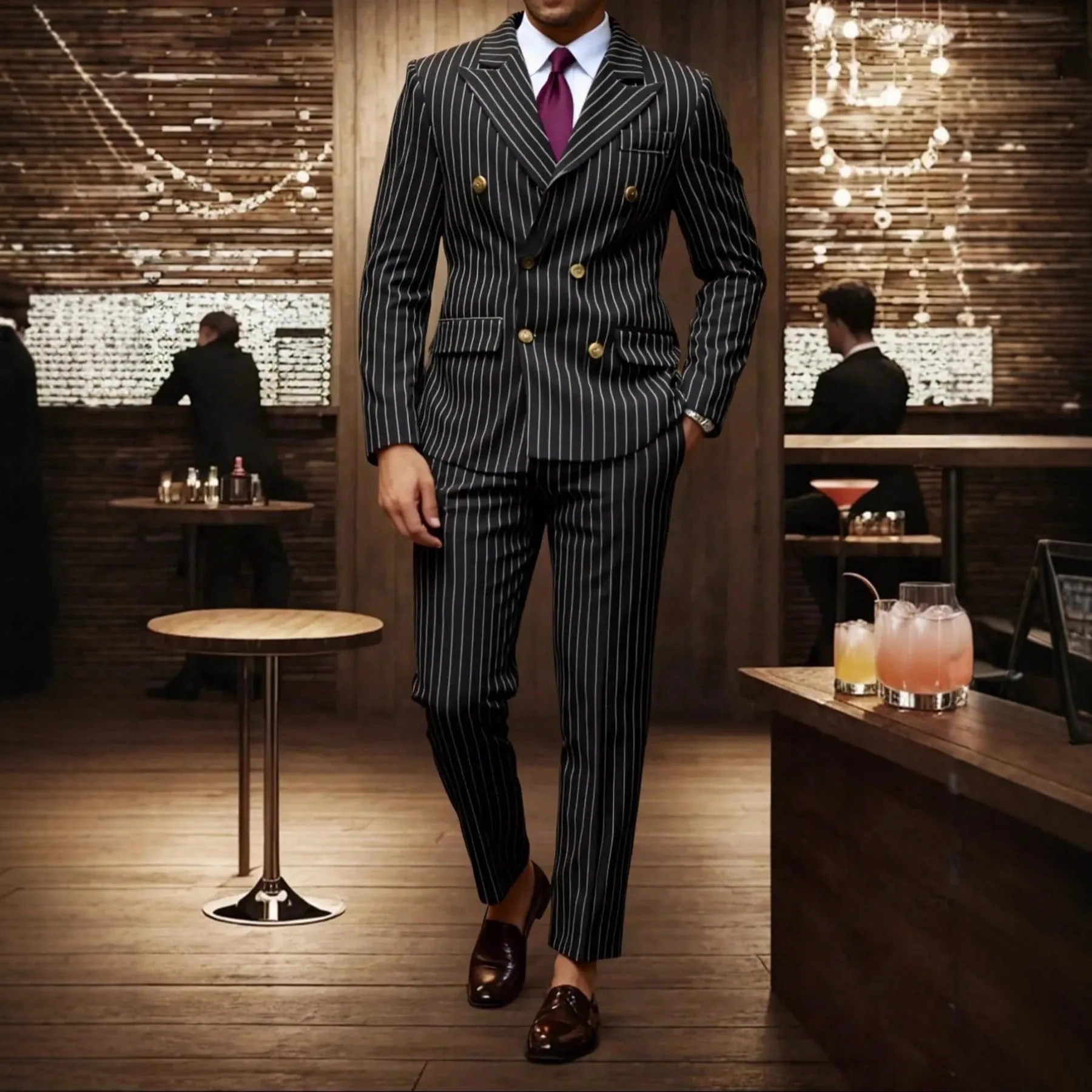 Suit for Men Stripe Groom Tuxedo 2 Pieces Double Breasted Business Blazer Terno Masculino Wedding Set Daily Jacket Pants