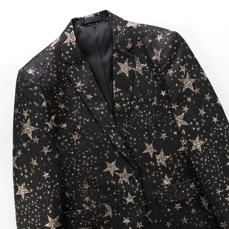 New Arrival Men's Slim-fit Printed Long Beaded Notched Collar Business Casual Italian Style Acetate Cotton Blend Suit