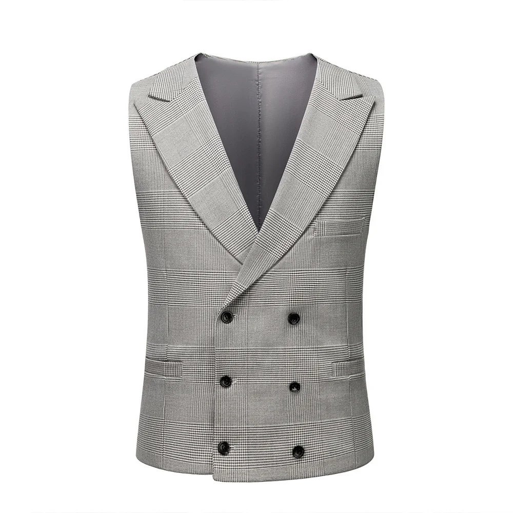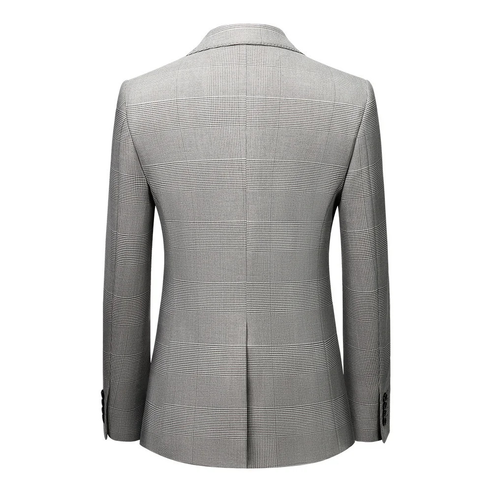 M-4XL Men Plus Size Plaid Single Breasted Zipper Fly Flat Business 3-Piece Light Grey Formal Wedding Suits (Jacket+Vest+Pants)