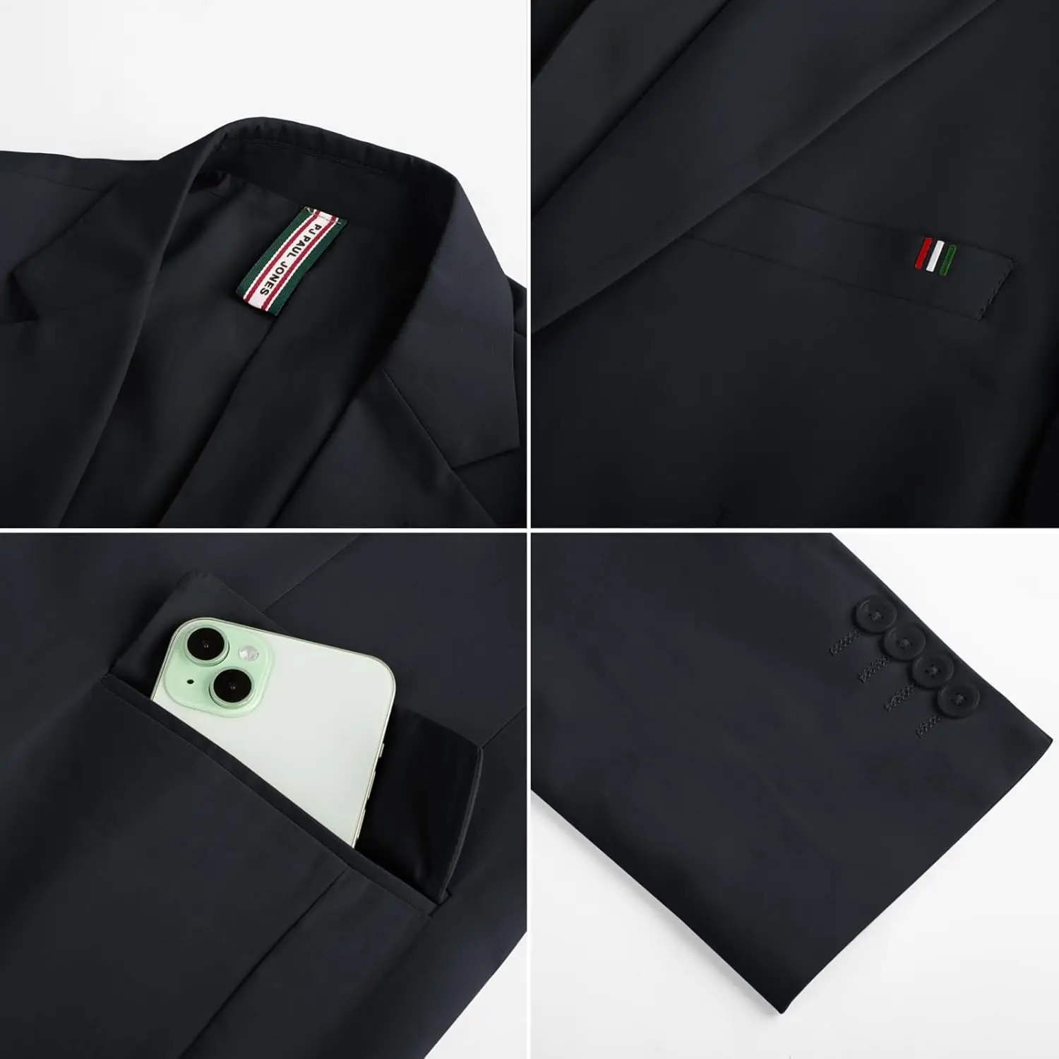 2026 Trendy Plus Size Men's Custom Single Breasted V-neck Italian Style Suit Jacket Polyester Rayon Black Waterproof Breathable