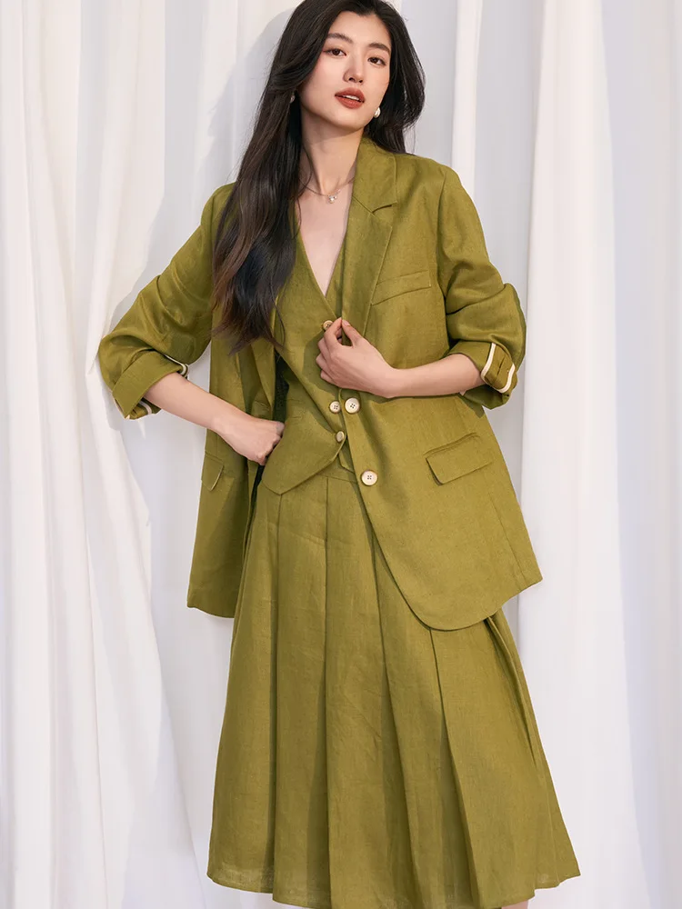 New Fashion Women's Linen V-neck Autumn Regular Fit Long-Sleeved Anti-shrink Blazer Elegant Korean Casual Designer Suits Coats