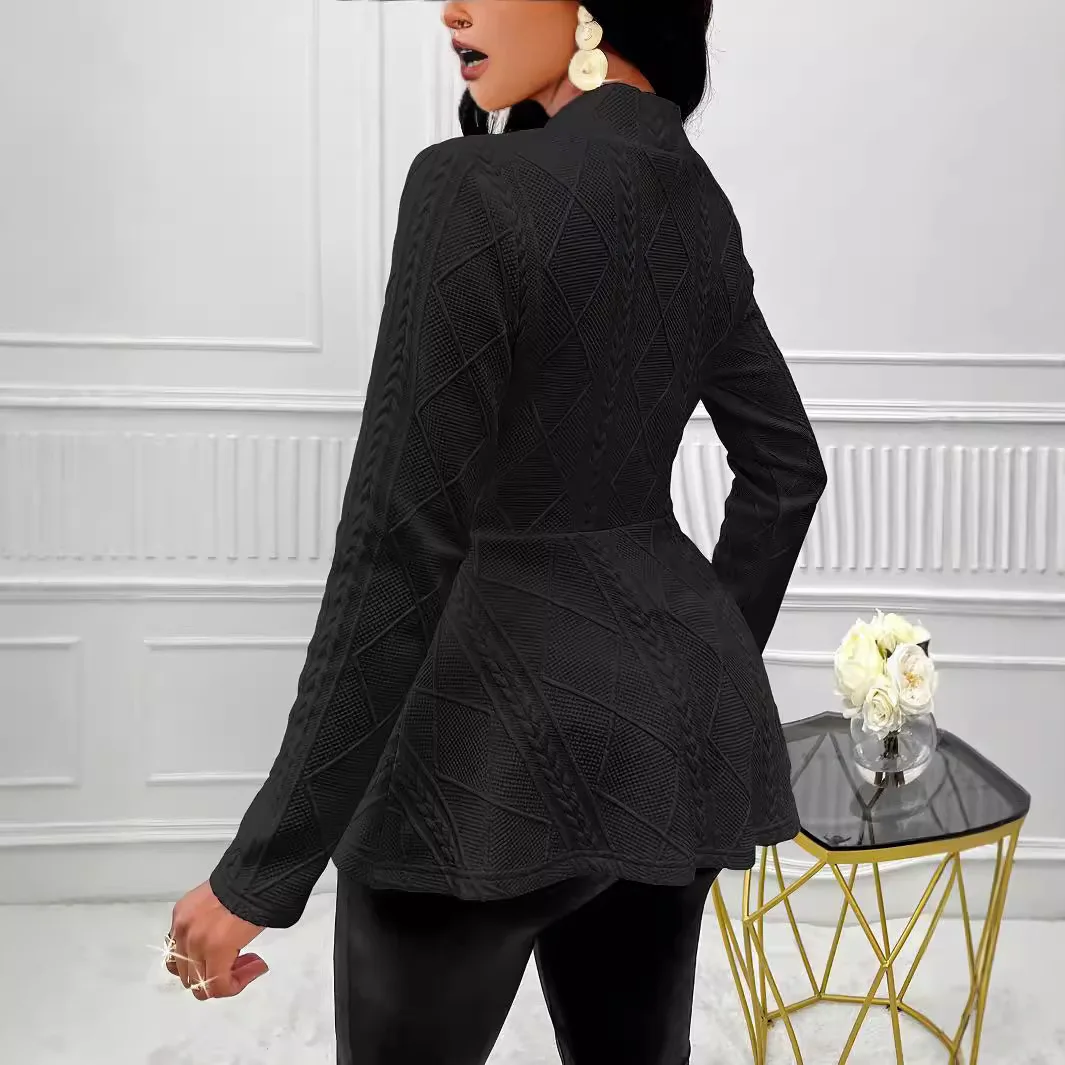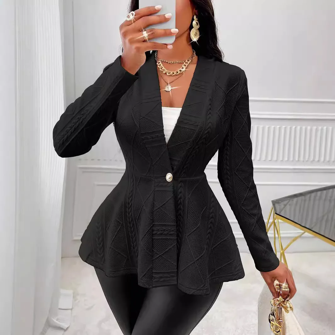 2026 Europe United States Cross-Border Autumn Winter New Ladies Solid Color Thickened One-Button Wool/Silk Mandarin Collar Hand