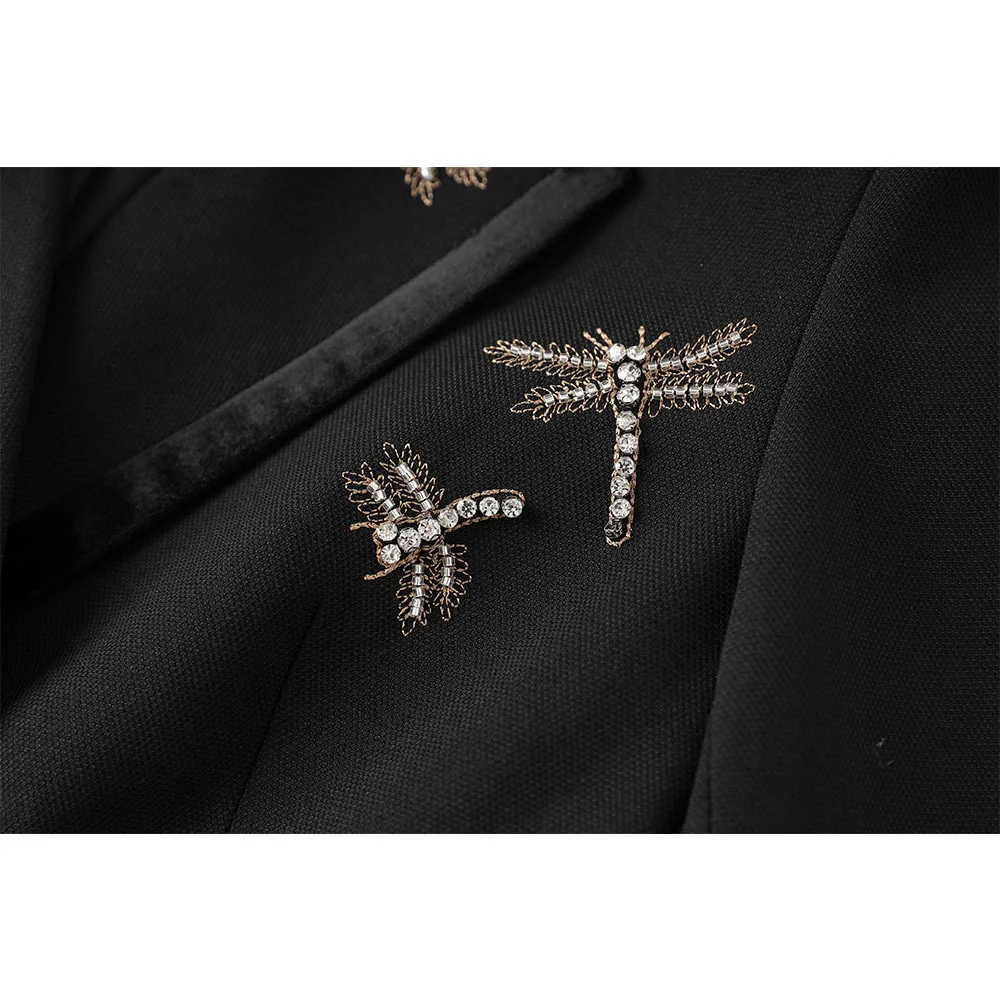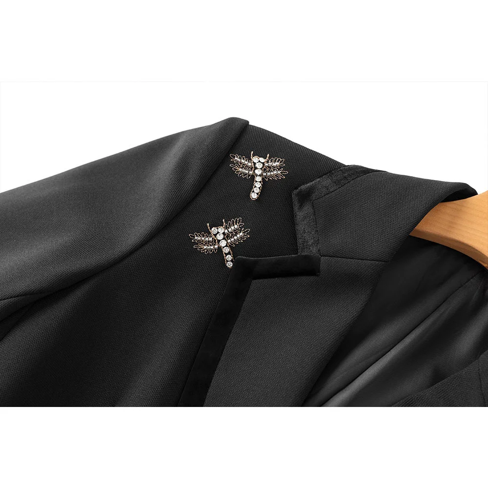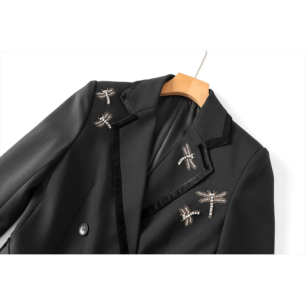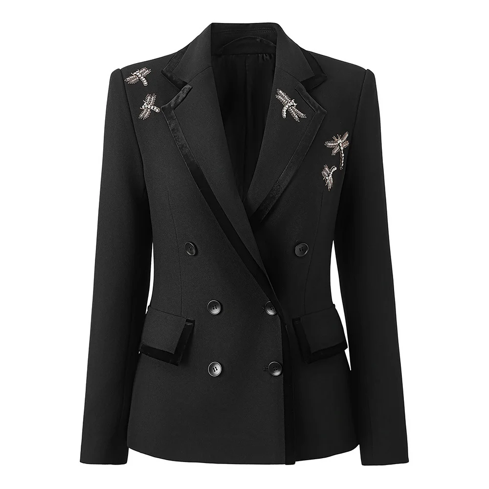 Elegant Nail Diamond Ladies Blazer Jacket Women's Suits Double-breasted V-neck Anti-Wrinkle Full Sleeve Sashes Solid Worsted