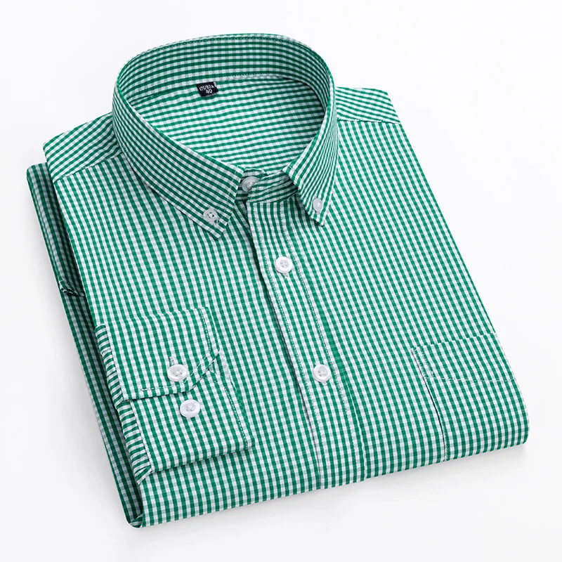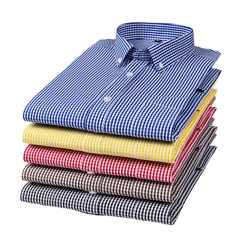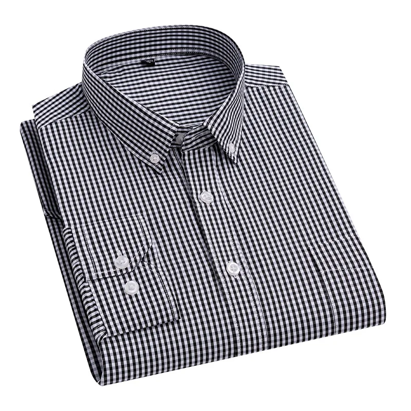 YiFeng Clothes Factory Men's Formal Plaid Long Sleeve Shirts Slim Fit Single Breasted with Single Pocket Soft Office for Spring