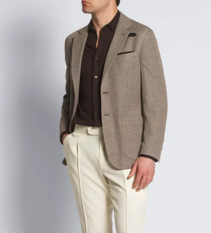 High Quality Tailor-Made Suit Factory Light Brown Silk and Wool Jersey Jacket for Men Business Men's Suits Jacket