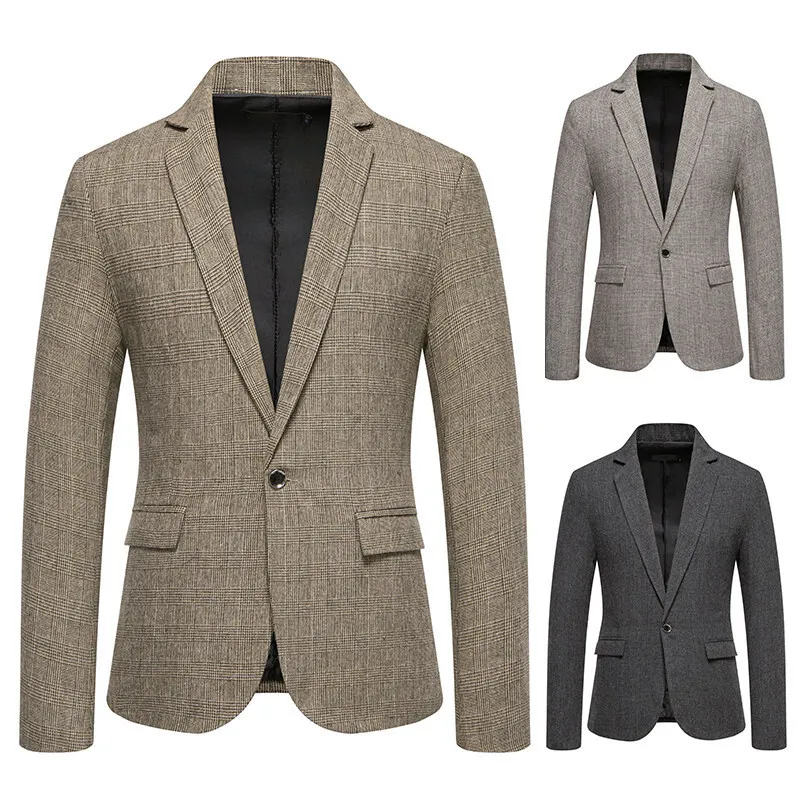 YiFeng Plus Size Men's Casual Youth Single Suit Jacket European American Business Style Polyester/Rayon V-neck Zipper Closure