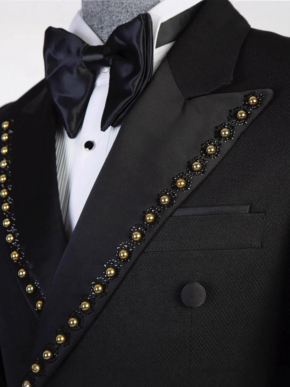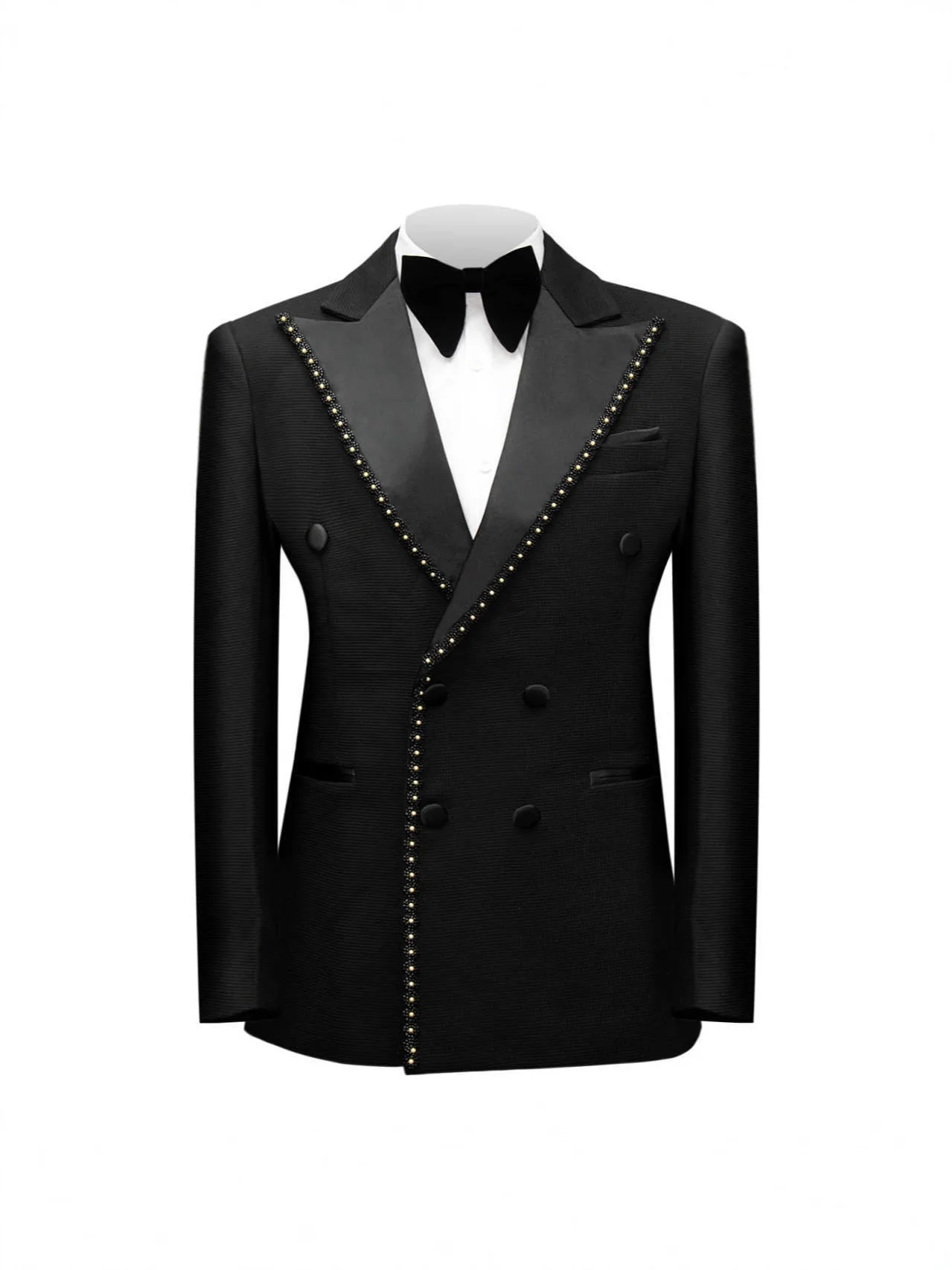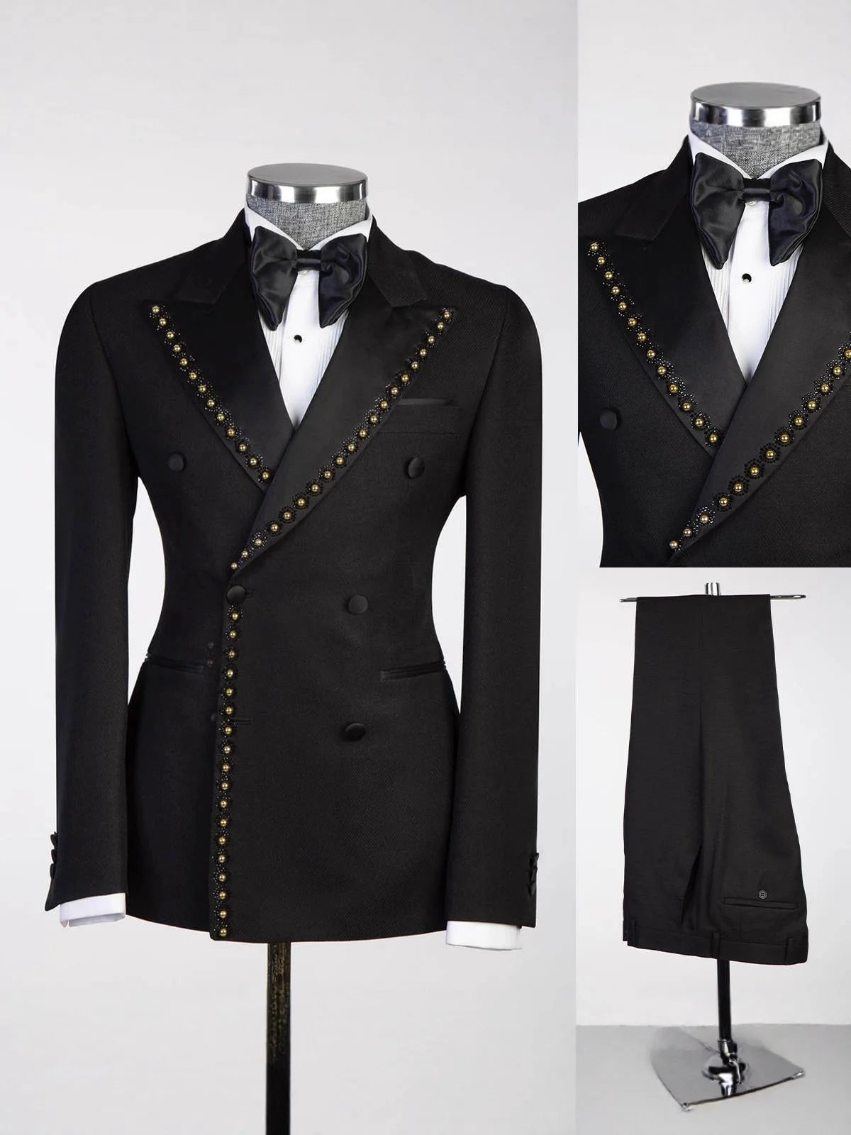 High Quality Plus Size Double Breasted Men's Business Suits with Rhinestone Embroidery Formal Jacket Pants Set for Wedding Party