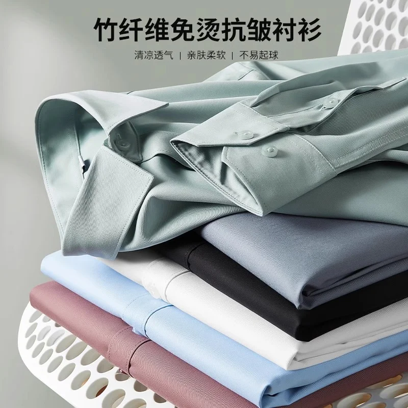 Wholesale Custom Made Men's Casual Slim Fit Button Formal Fashion Solid Color Breathable Bamboo Fiber Shirt