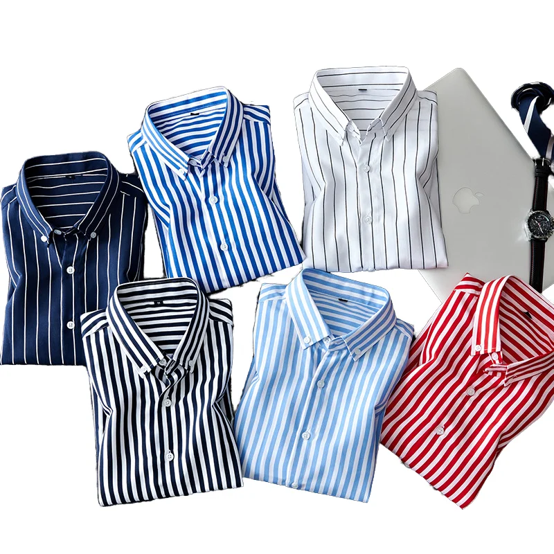 Custom Men's Athletic Button-Up Crocheted Dress Shirt Oversized Striped Polyester Long Sleeves Casual Eco-Friendly Quick Dry