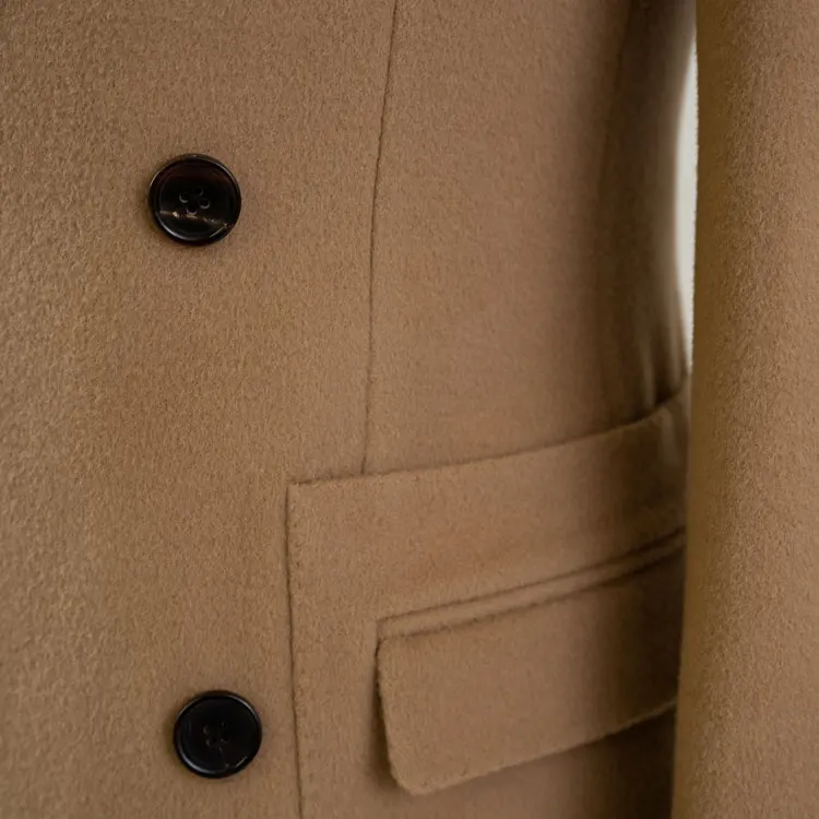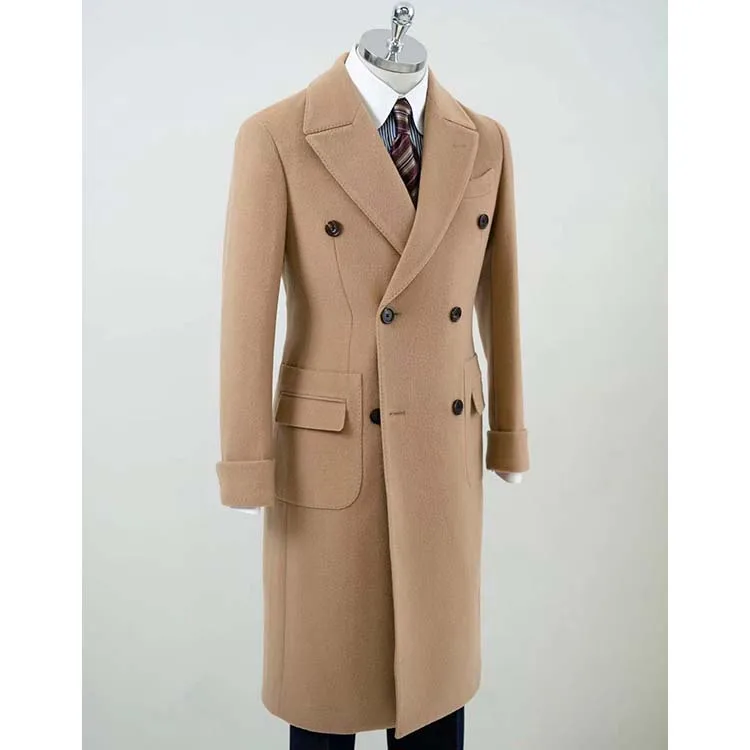 Brown Woolen Double Breasted Business Suit Style Great Winter Overcoat for Men-Plus Size Shawl Lapel Belt Breathable Plus Size