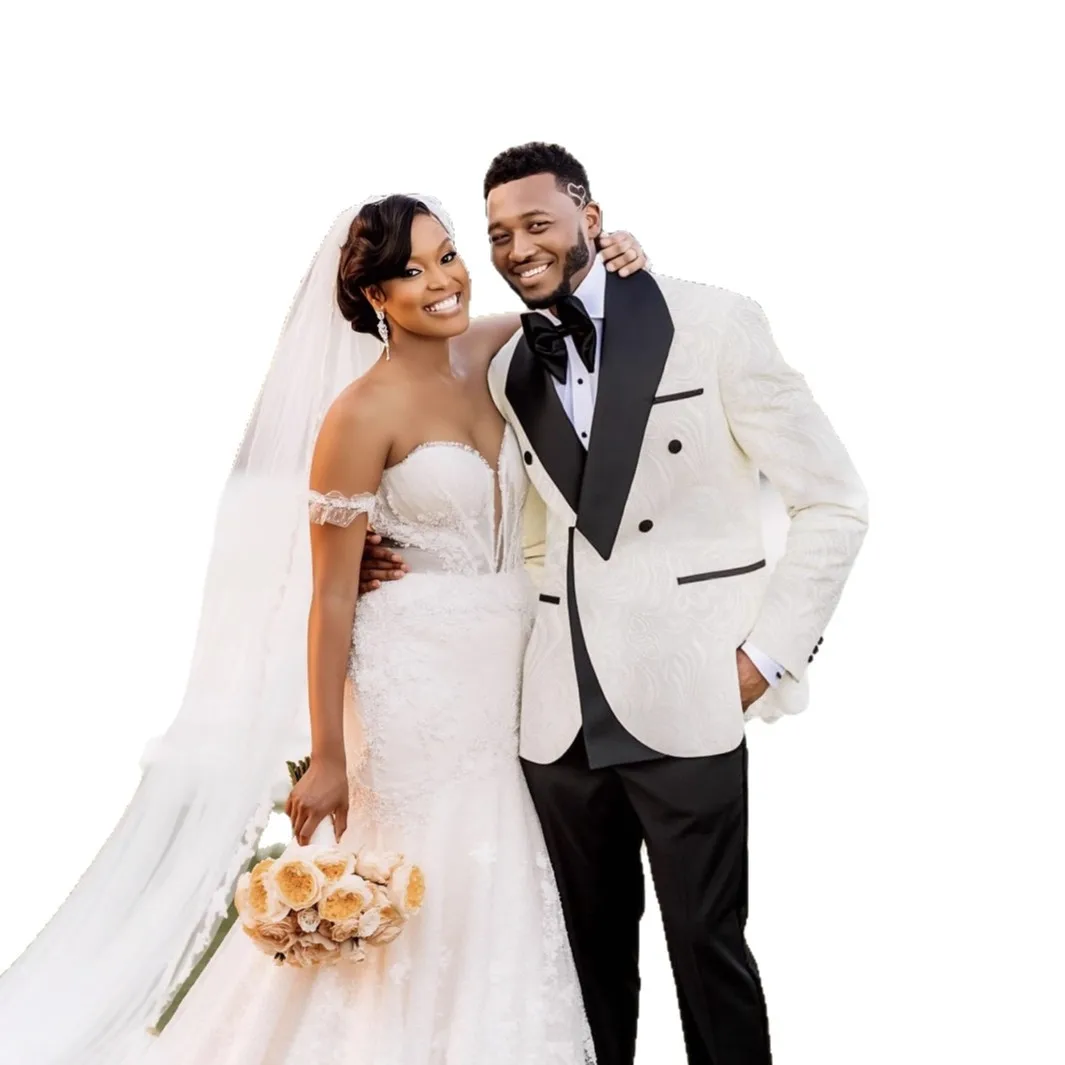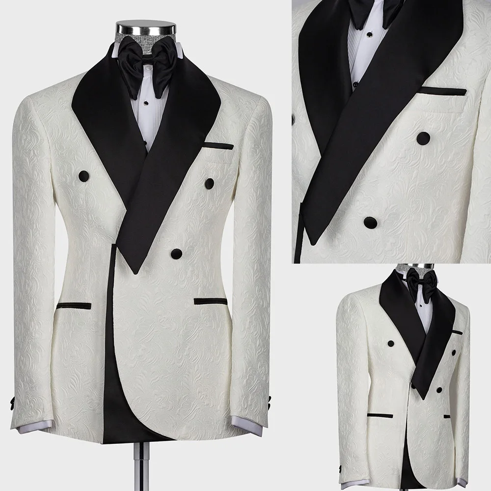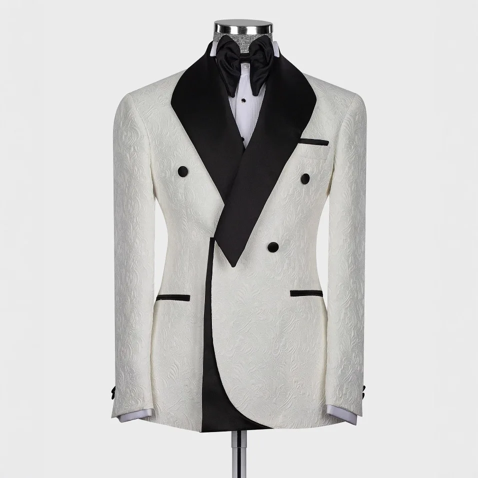 Men's Wedding Tuxedo Single Jacket Jacquard Ball Design Slim V-neck Double-Breasted Zipper Fly Business Suit Worsted