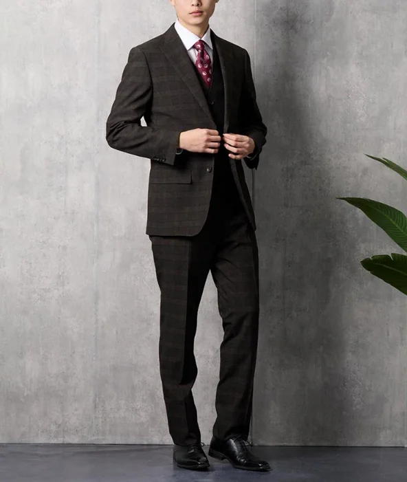 High Quality Dark Burgundy Wool Slim Fit Suit for Men Single Breasted with Zipper Fly Pant for Formal Parties and Groom Wear