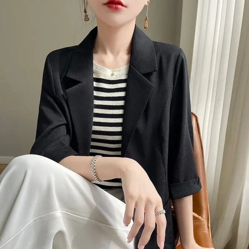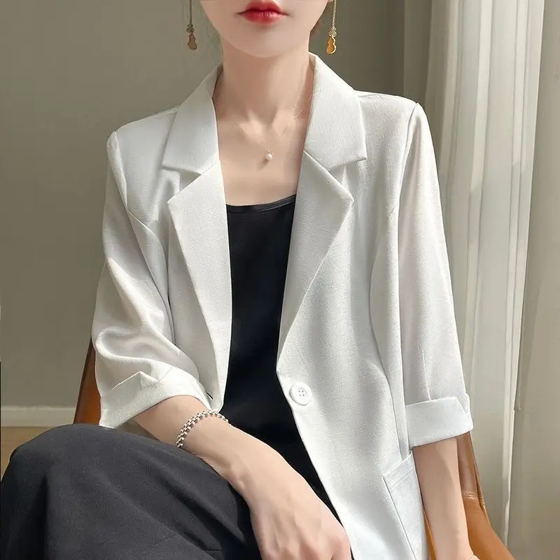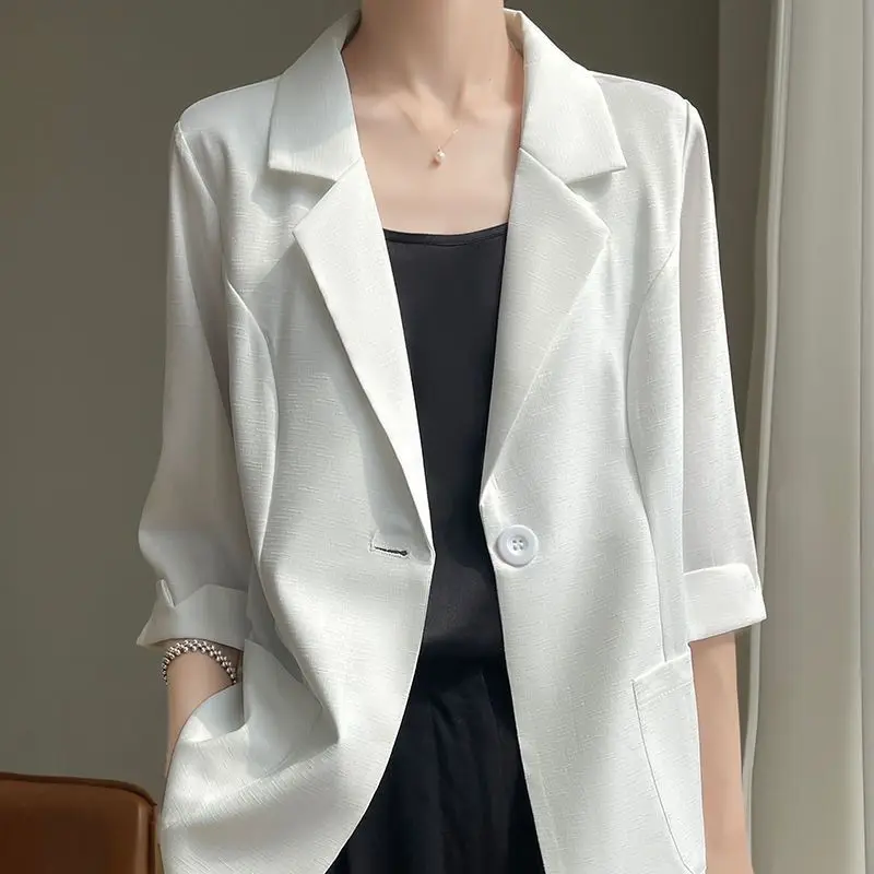 Summer Single-Button Slim-Fit Elegant Fashionable Versatile Solid Color Top