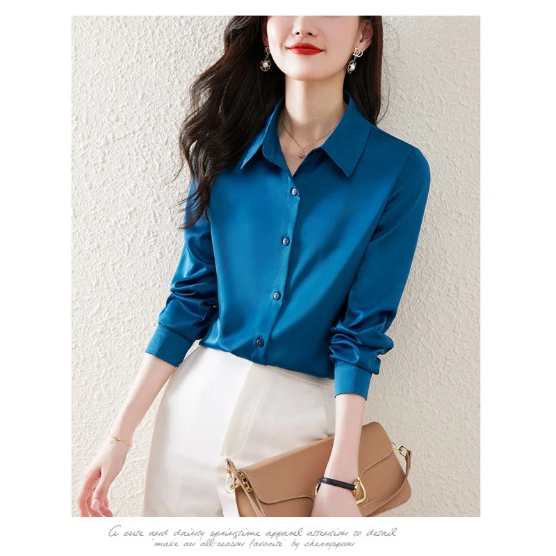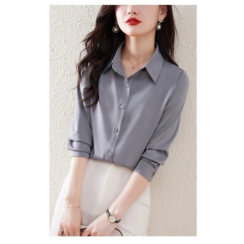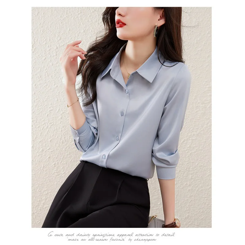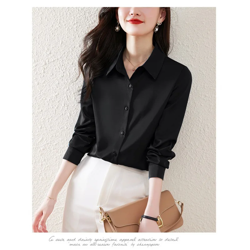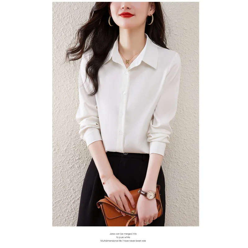2026 Wrinkle-Resistant Satin White Shirt Women Solid-Color Blouse Elegant Top