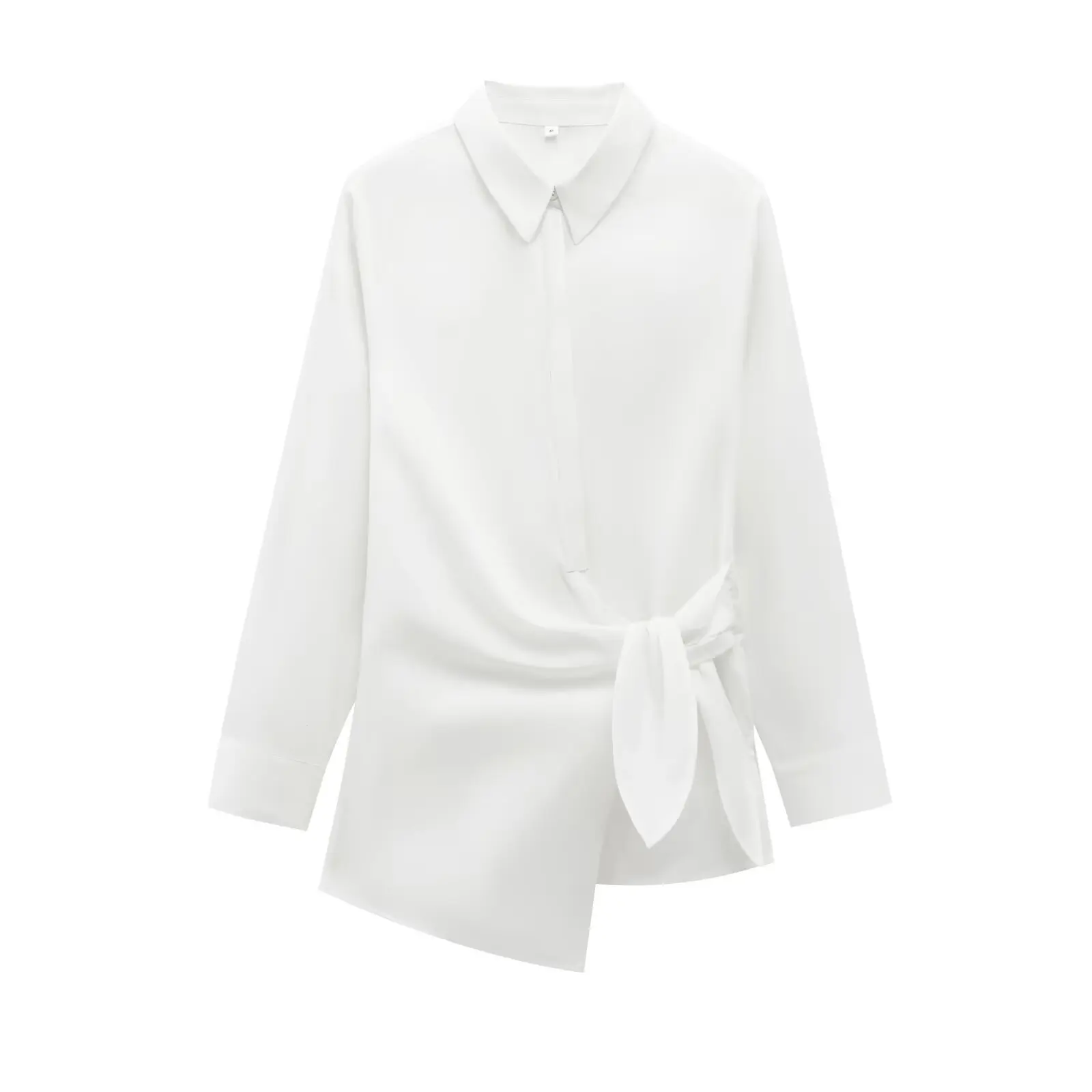2026 Spring New Arrival Double-Breasted Bow Tie Casual Long-Sleeve Shirt