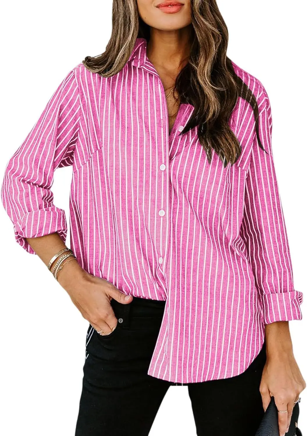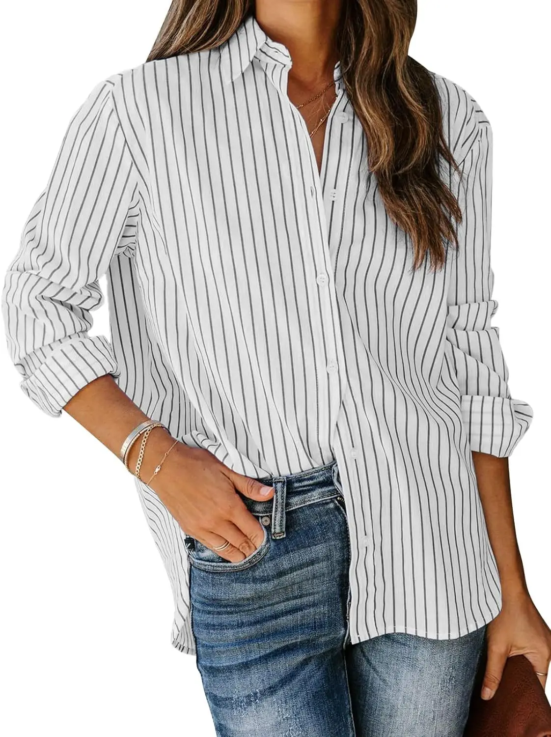 Women's Casual Striped Female Loose Long-Sleeved Blouse Shirt