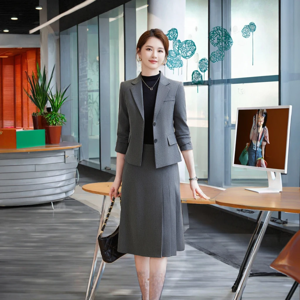 Professional Women's Office Suit Sexy Formal Business Two-Piece Set With Button Decor Half Skirt Design