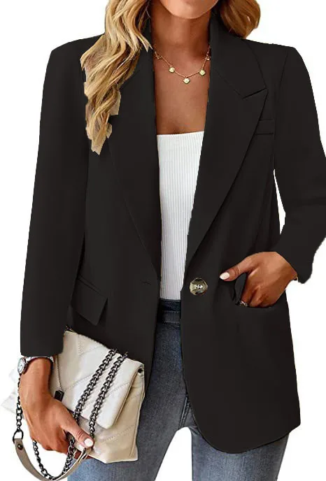 Women's Long-Sleeve Cardigan Solid Color Suit With Lapel Collar Slim Fit Single-Button Elegant For Women
