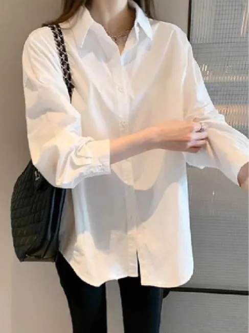 Factory Price Long-Sleeve White Uniform Shirt Women Workwear Retro