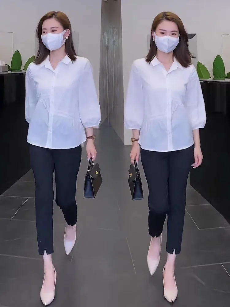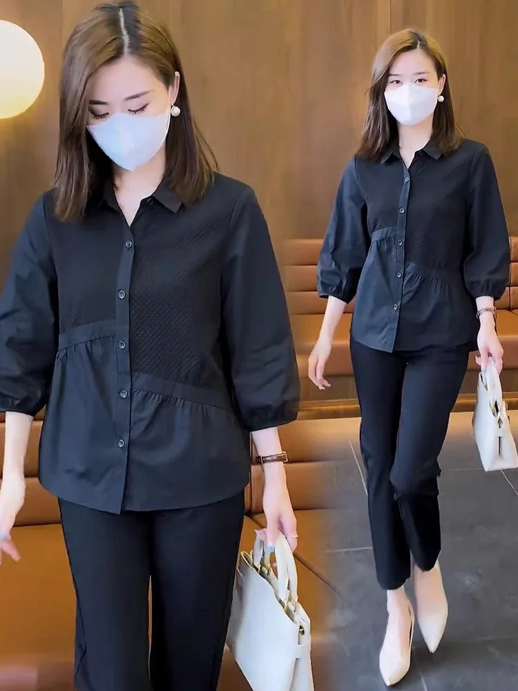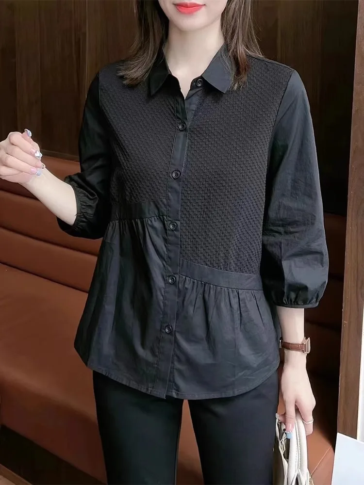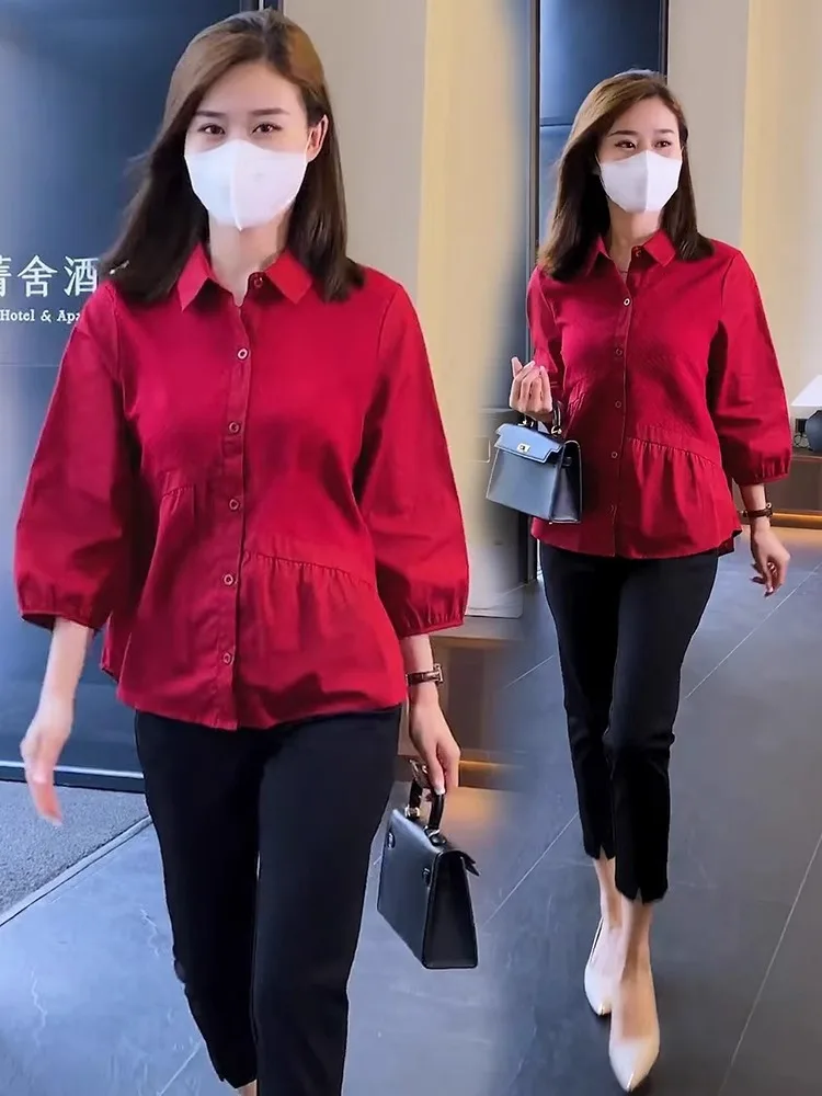Trendy Women's Shirt 3/4 Sleeves Stylish Blouse Elegant Versatile Base Layer Top