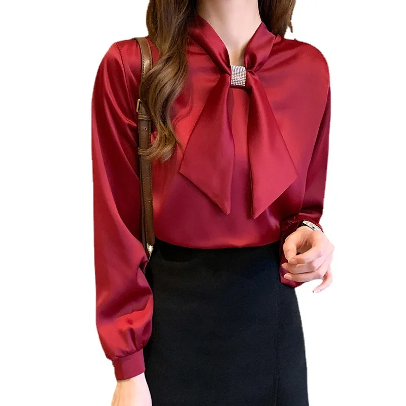 Women's Top Autumn Loose Fit Polyester-Silk Blend Fashionable Versatile Bow Tie Long-Sleeve Shirt
