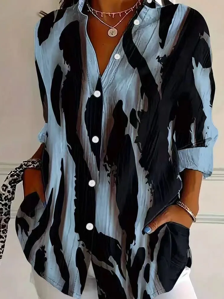 2026 Women's Apparel Casual V-Neck Long-Sleeve Pullover Regular Digital Print T-Shirt