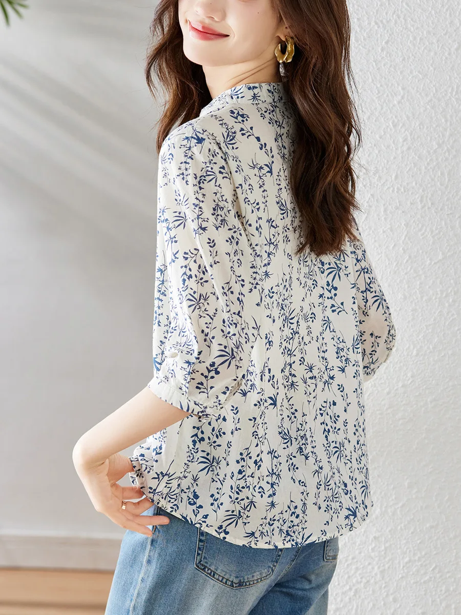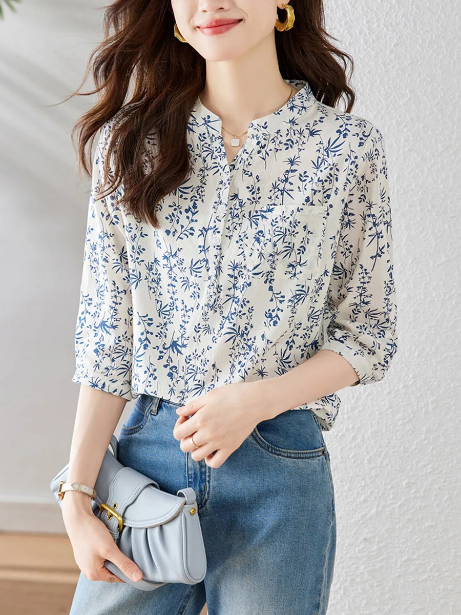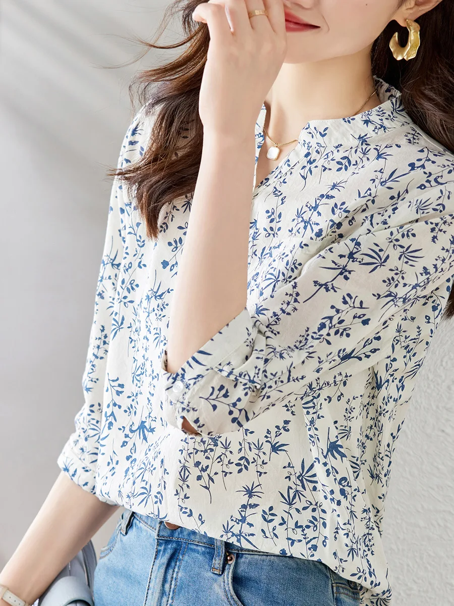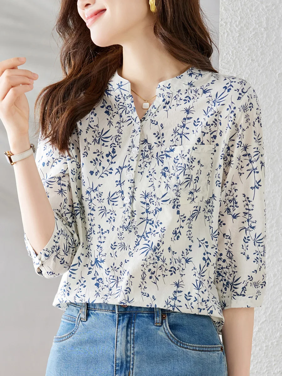 Factory-Direct Blue-and-White Floral Print Women Autumn Tank Top Casual Illusion Washable