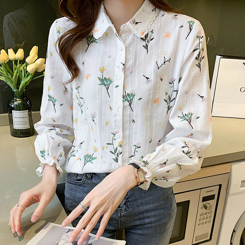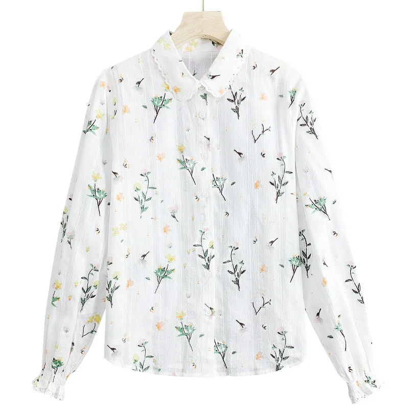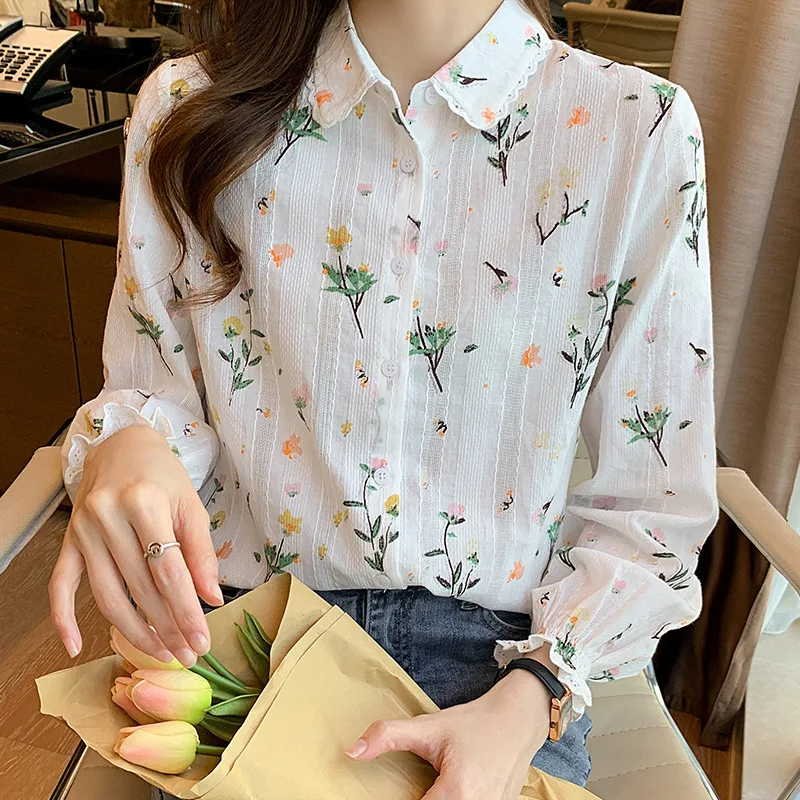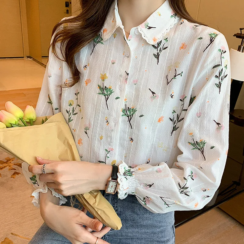 Women Lace Collar Elegant Lady's Pure Cotton Embroidered White Shirt