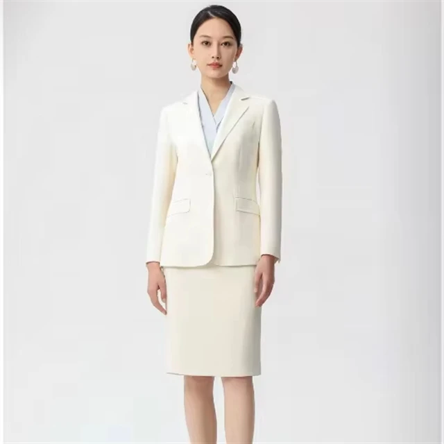 Women's Elegant Polyester Spandex Suit Set Tailored Fit Office Business Wear Stretch Fabric With Wrinkle Resistant Design