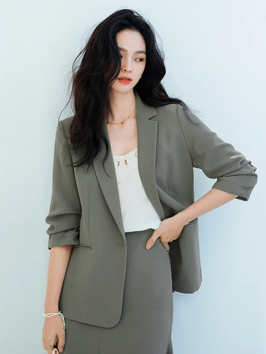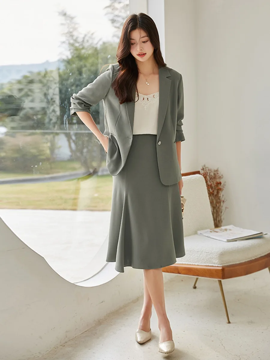 Women's Autumn Professional Anti-Wrinkle Velour Slimming Single-breasted Commuter Suit Top 12119 & Skirt 12120 Polka Dot Pattern