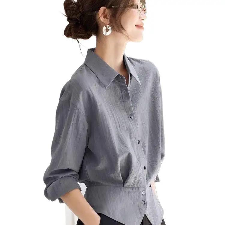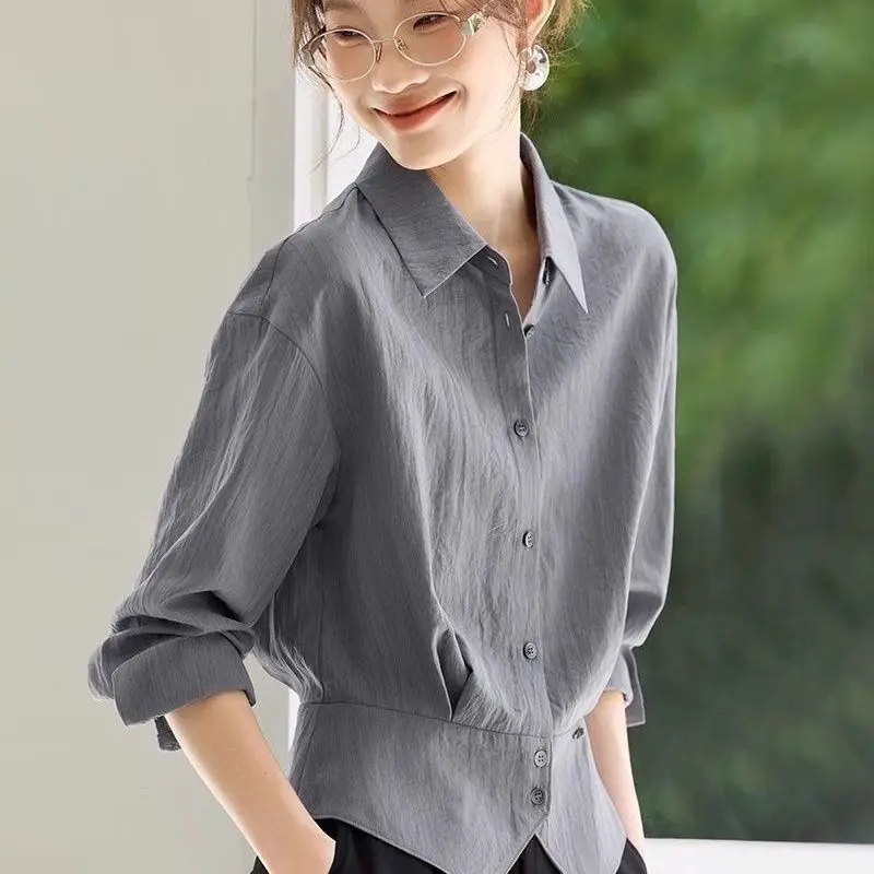 French-Style Ladies Shirt Top 2026 Autumn Blouse, Waist-Cinching And Slimming