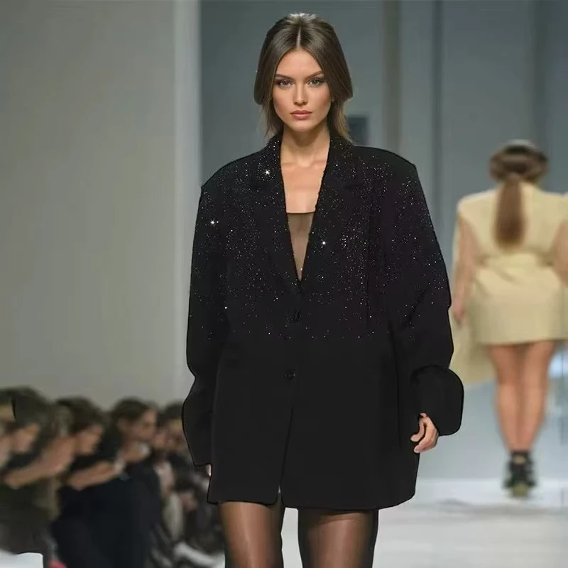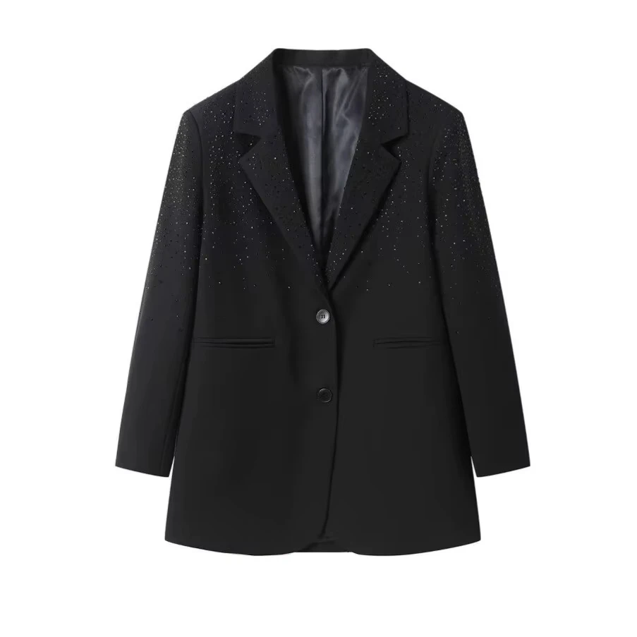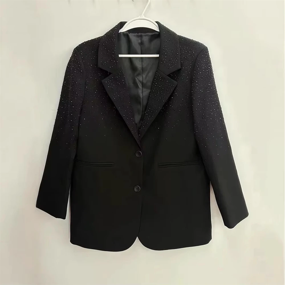 2026 Spring New French Heavy Duty Luxury Casual Rhinestone Studded Women's Blazer, Loose Fitting And Elegant Coat