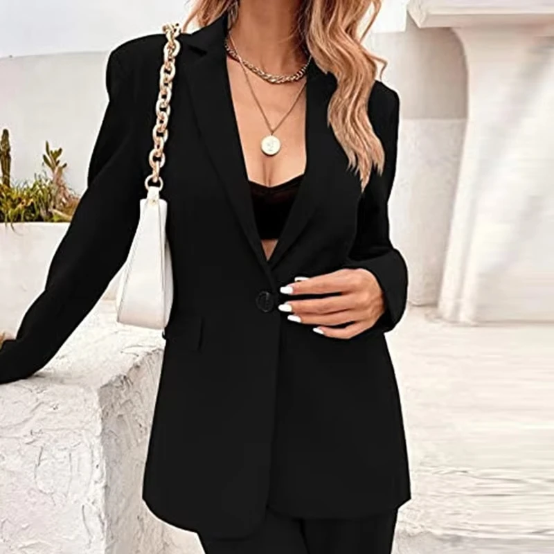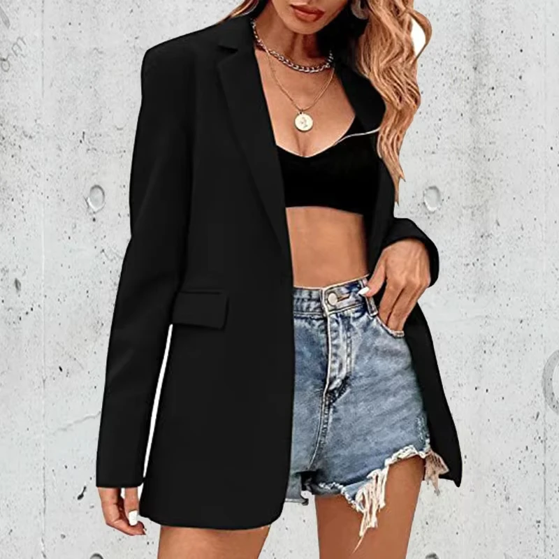 Women's 2023 Autumn And Winter New Casual Slim Solid Color Lapel Fashionable With Polyester Lining