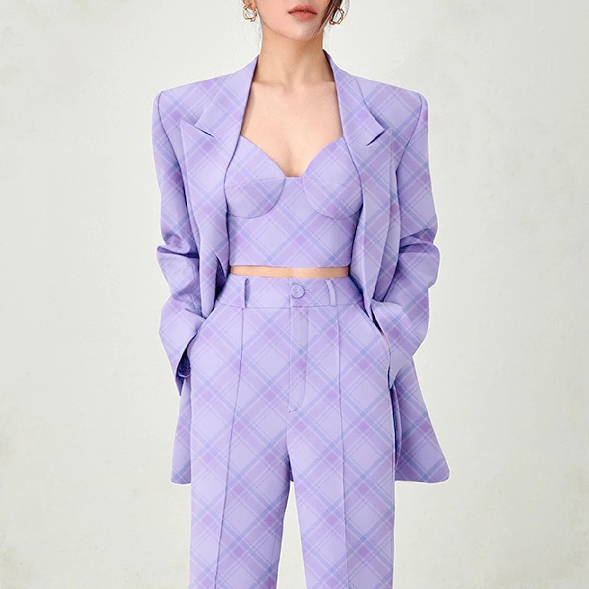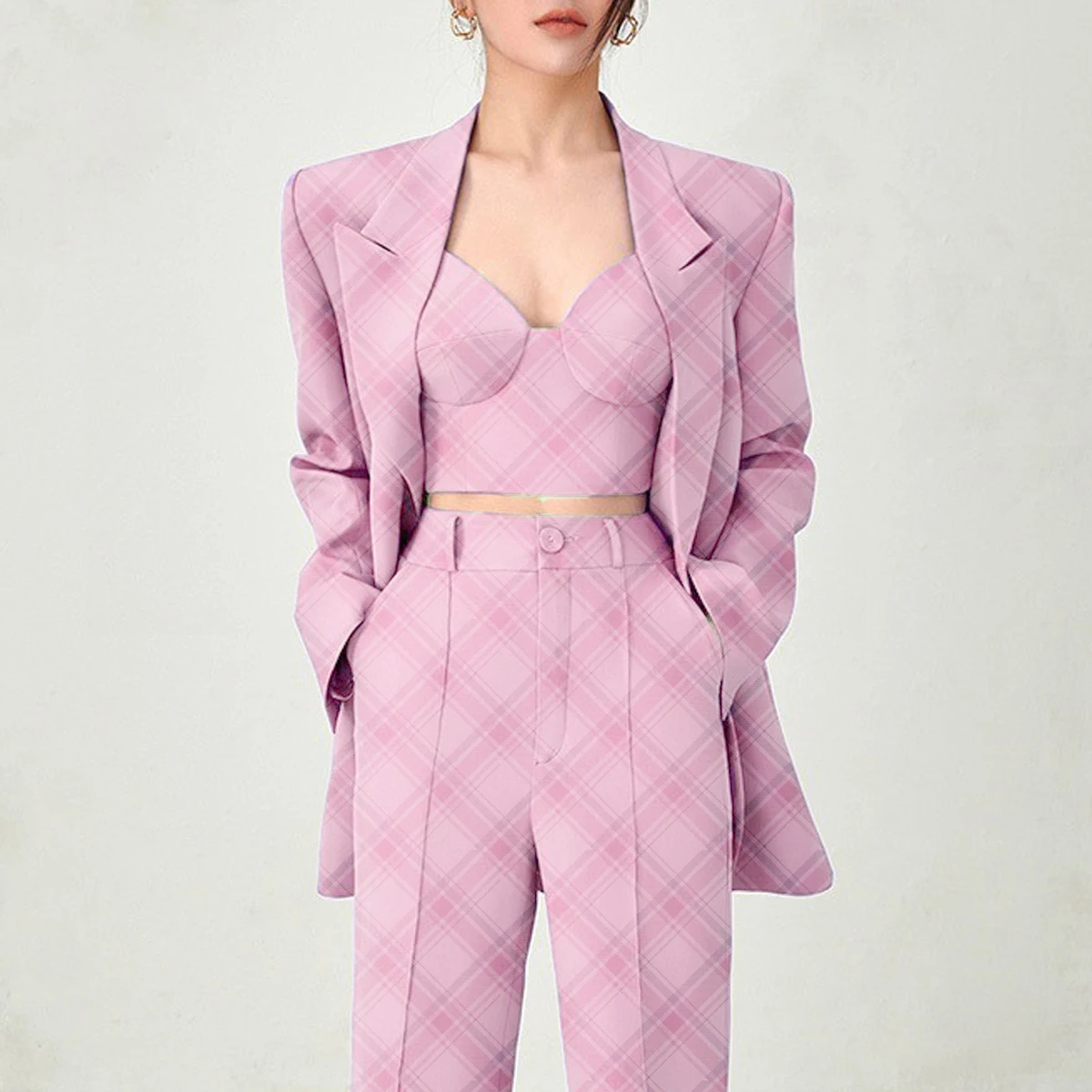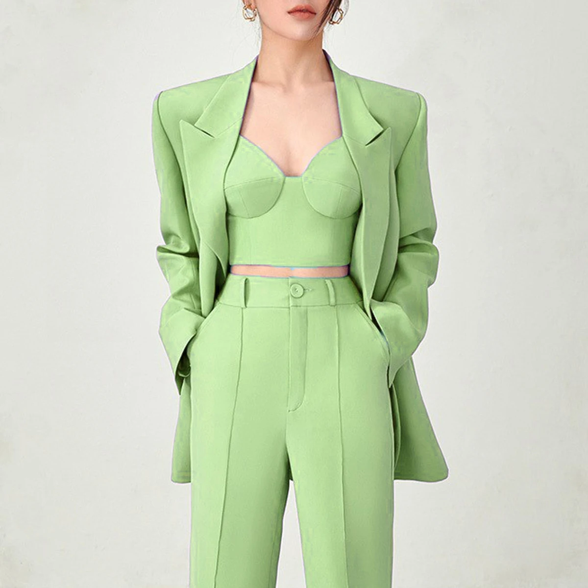 High Quality Casual Temperament Fashion Occupational Women's Suit With Bra And Pants Set Three Piece Sehe