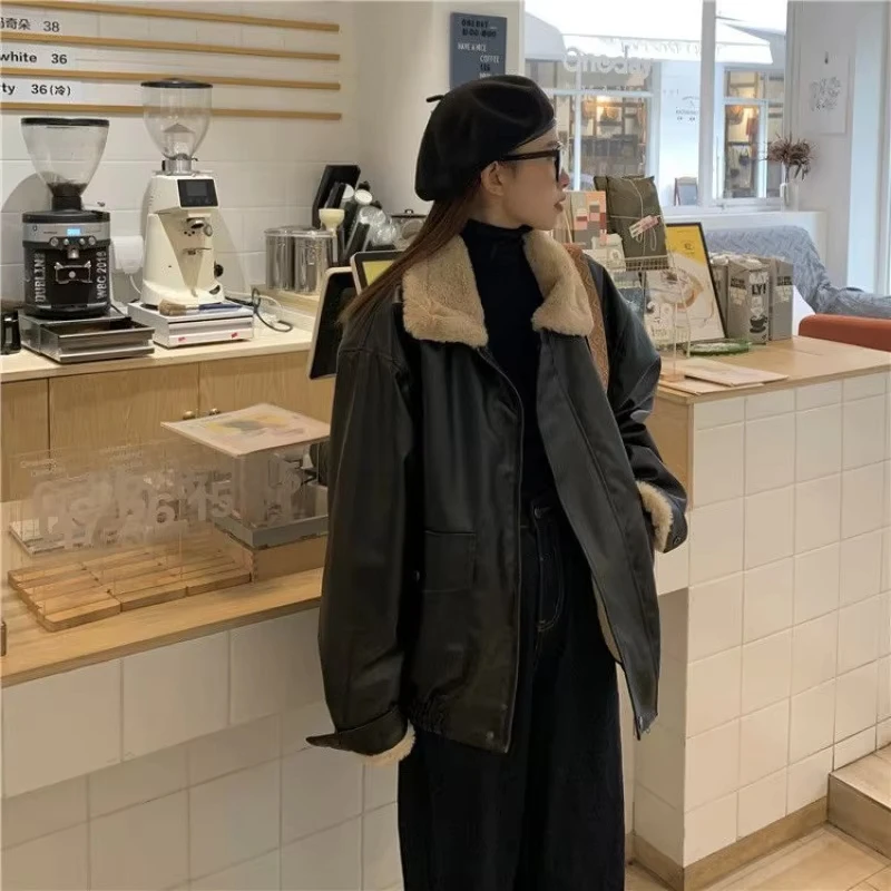 Shearling Jacket Sheepskin Coat Leather Jacket Fur Coat Badge Pilot Leather Jacket