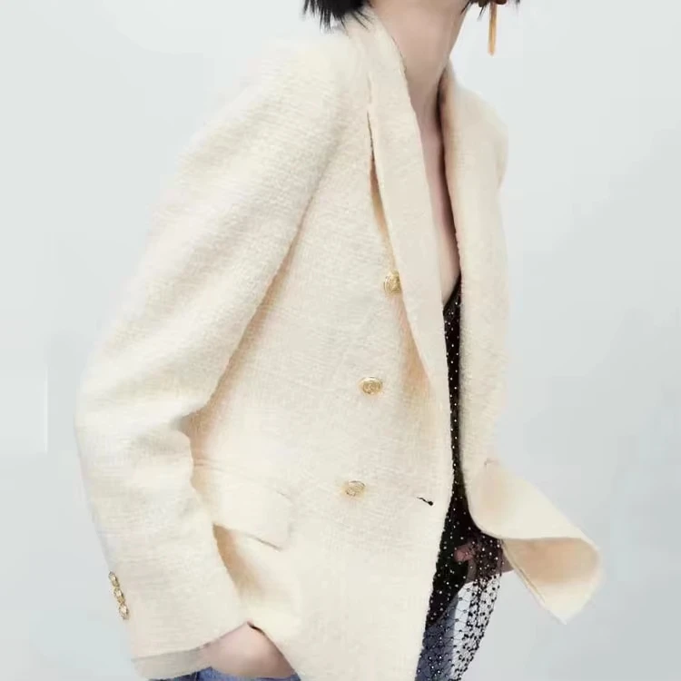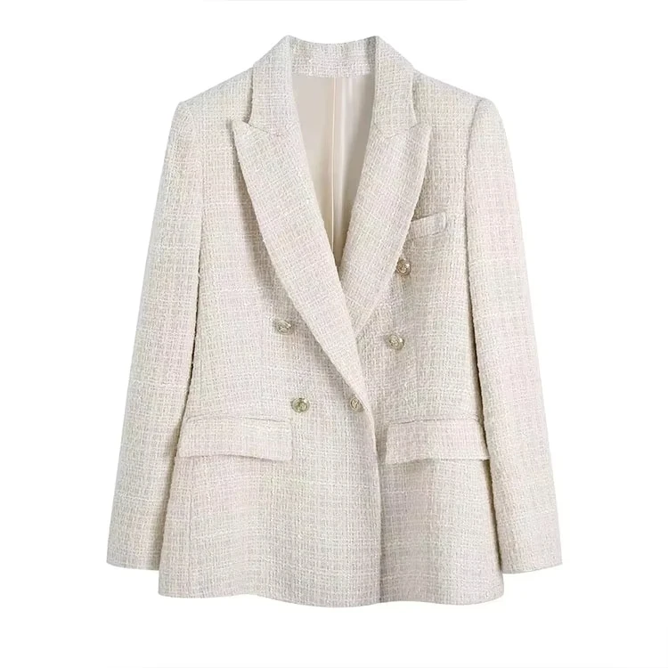 Bmurhmza2022 Spring And Autumn New Double Row Button Long Sleeve Lapel Plaid Texture Suit Coat Fashionable Women's Clothing