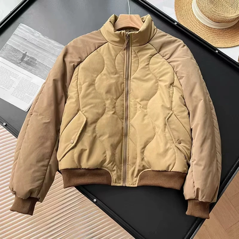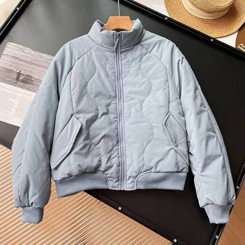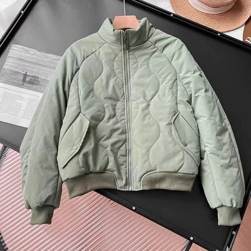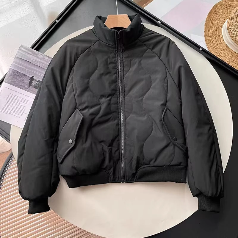 157 2026 New Women's Plus Size Autumn Winter Windproof Solid Woven Zipper Closure Finished Stand-Up Collar Quilted