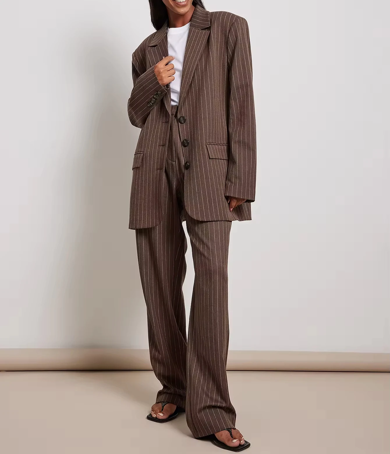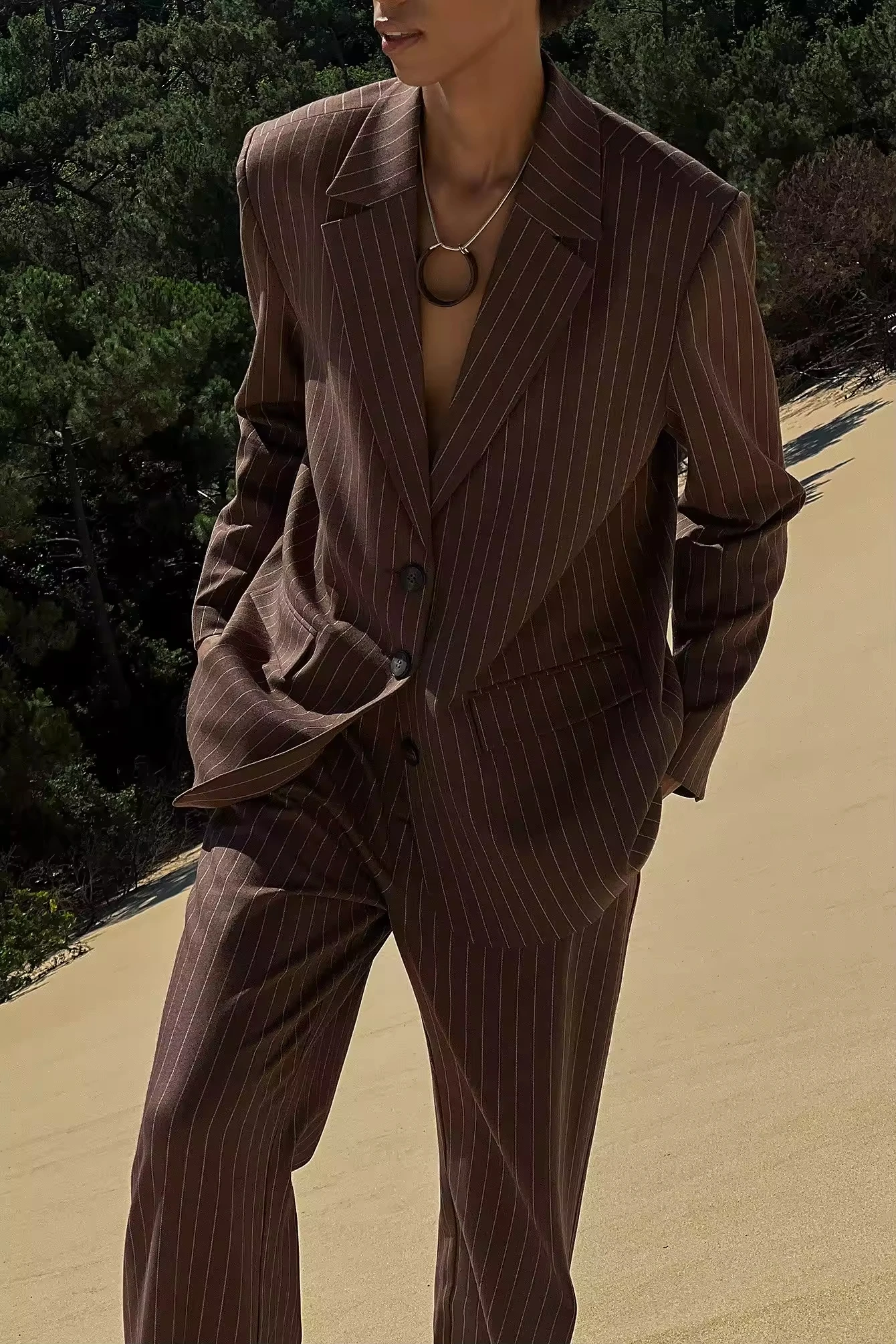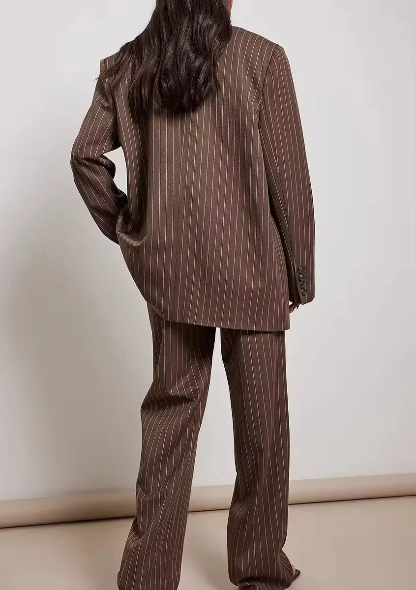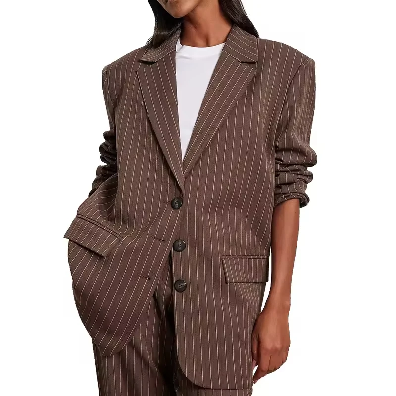 Ladies Sustainable Suits Striped Oversized for Office Wear Long Length Woven Pattern Type