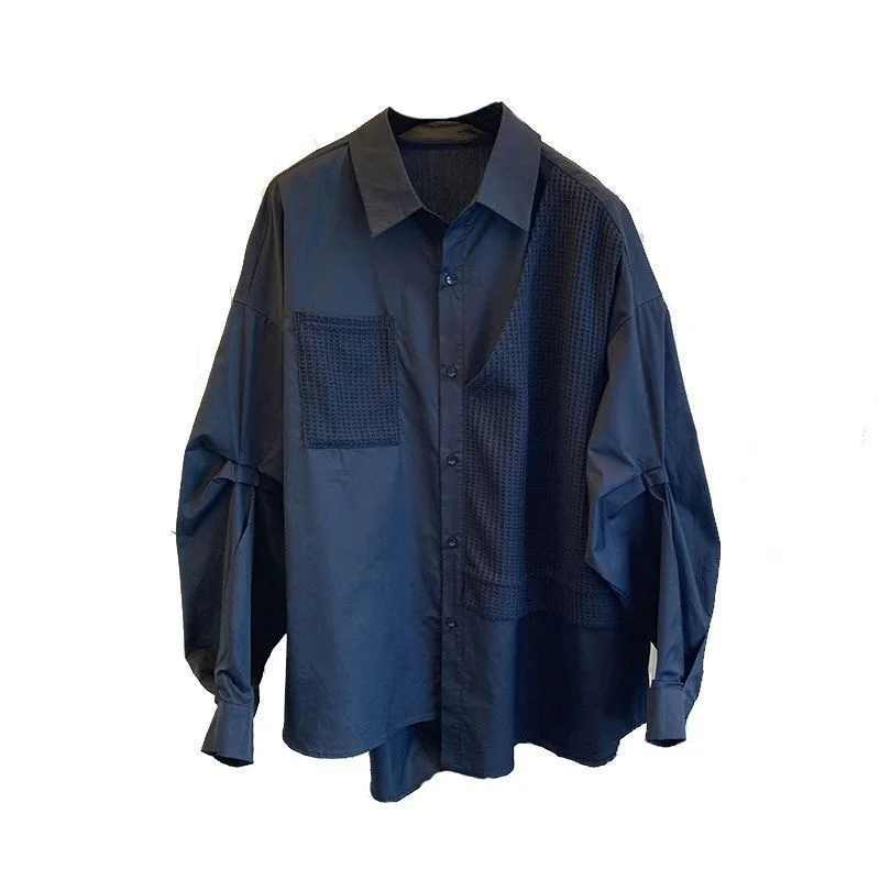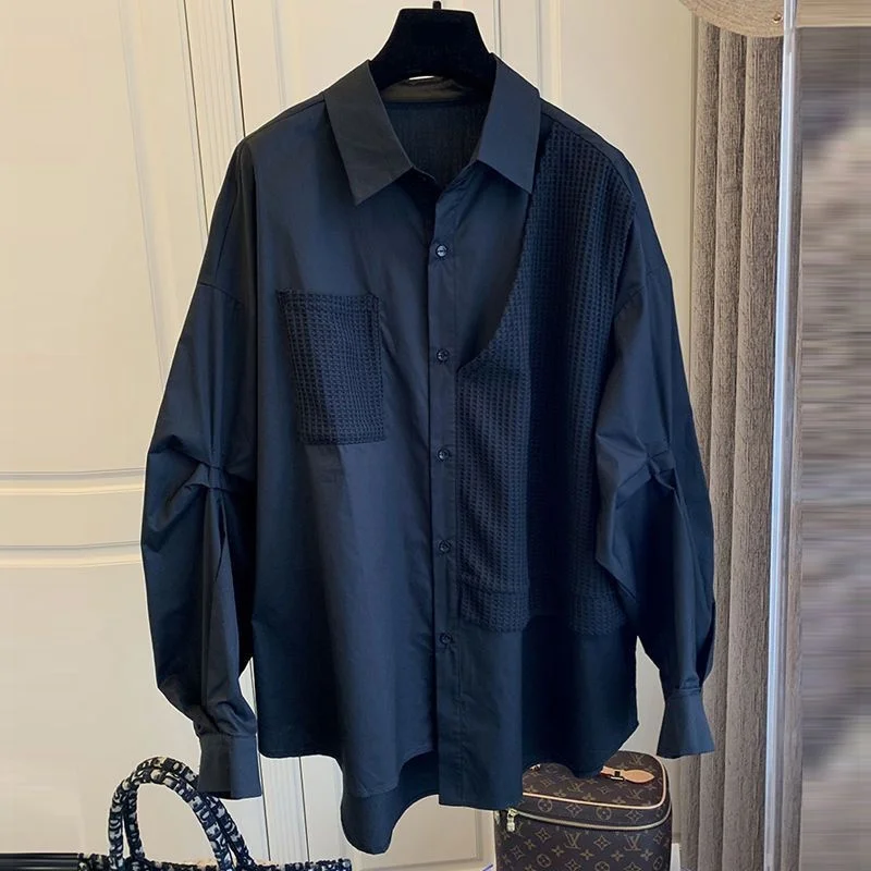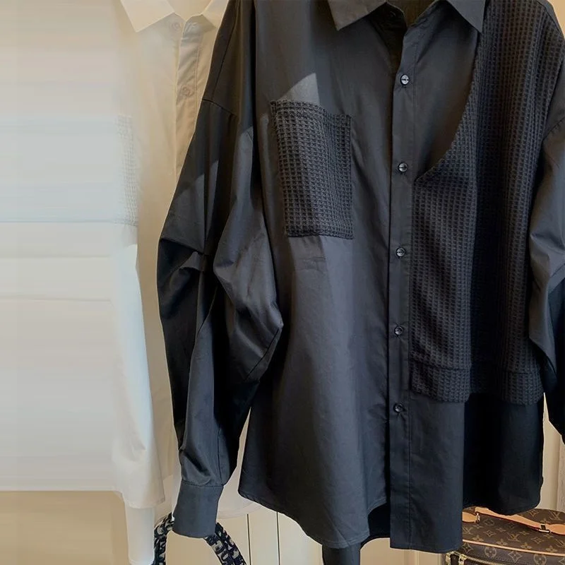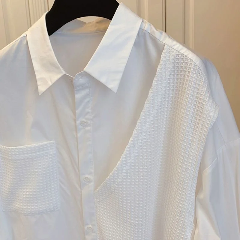 White Black Women's Casual Retro Loose Fit Shirt Spring Autumn Patchwork Waffle Grids Korean Style Woman Clothing