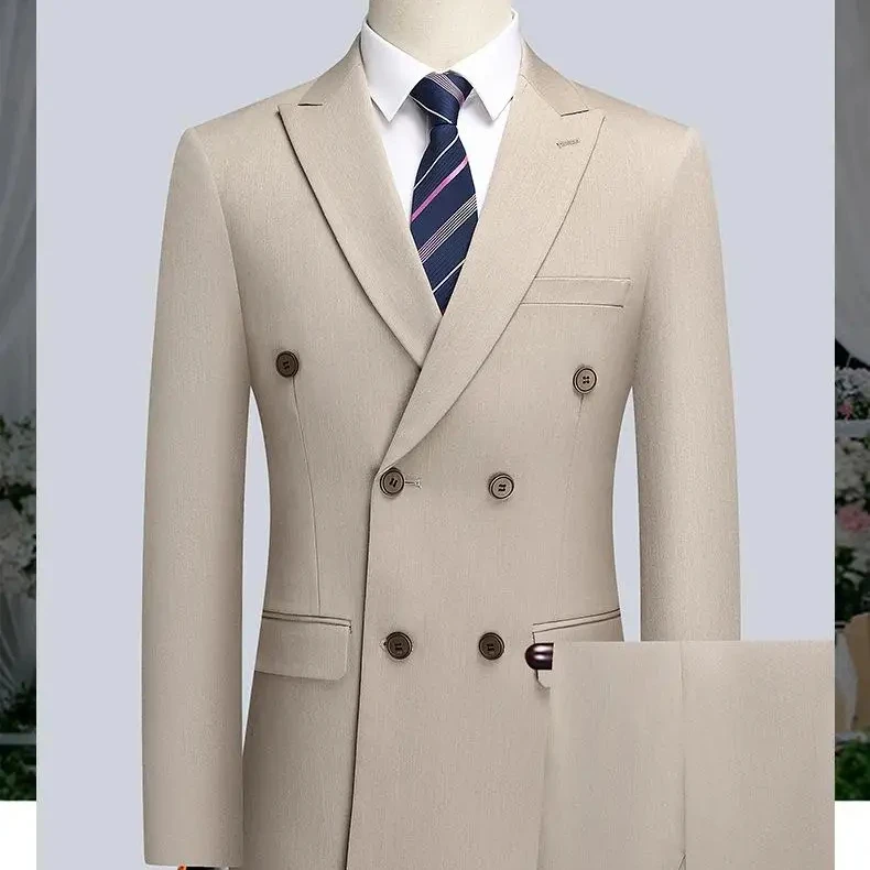 Men's High Quality Anti-Wrinkle Double-Breasted Business Suit V-Neck Lapel Collar Plus Size XL-Deliverable Hip Pants Breathable