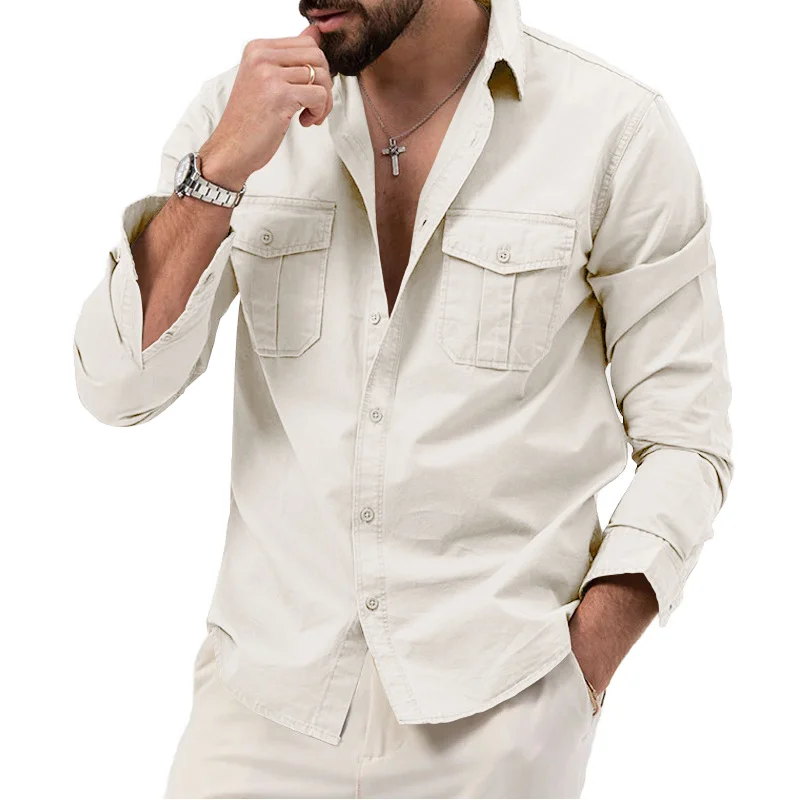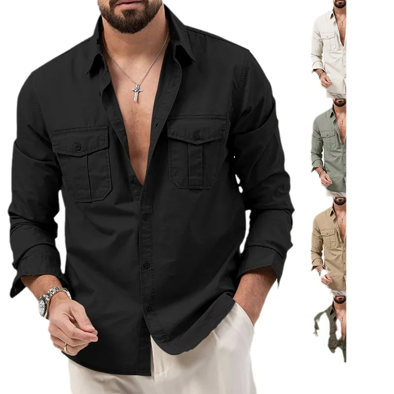 Men's Double-Pocket Casual Long-Sleeved Twill Shirt New European American Style Quick Dry Anti-Wrinkle for Autumn Formal Wear