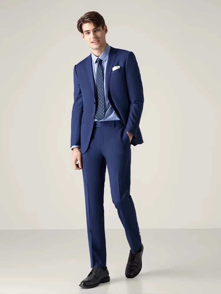 Haute Couture Men's Dark Blue All-Wool Single Breasted Wedding Suit High Quality Plus Size V-Neck Collar Bespoke Blazers